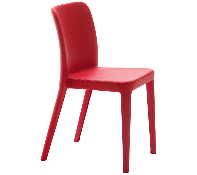 Nenè chair with four leg wooden frame is stackable up to eight pieces.