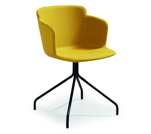Calla armchair with four-legs base in lacquered steel. Polypropylene seat suitable for outdoor use. Optional: cushion in fabric, leather or faux leather.