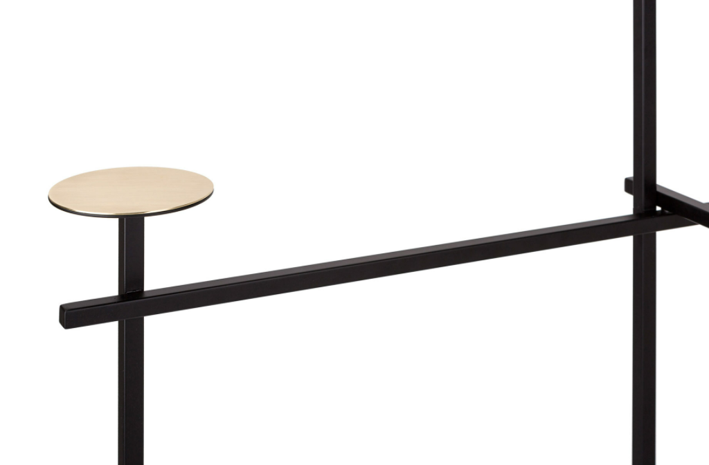 MATERIALI: Struttura in ferro verniciato nero RAL 9005 e piano d’appoggio in ottone naturale satinato