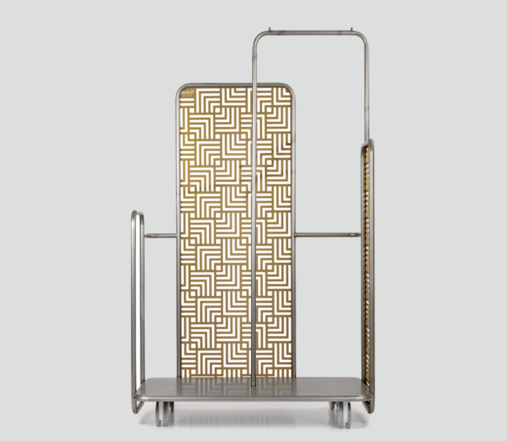 Rivestimento per pareti ispirato alle cancellate degli storici palazzi di Milano anni ’30. Un disegno continuo, adattabile a qualsiasi dimensione, ideale per hotels, boutique e in generale i grandi ingressi. Il rivestimento lavora su piani differenti, per enfatizzarne le forme e sottolineare il decoro.
