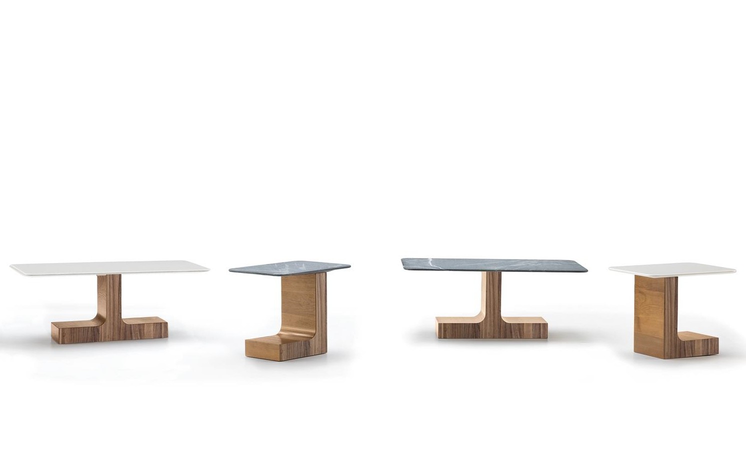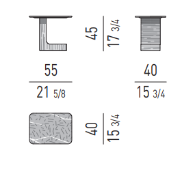 The top, with smooth edges resembling a river pebble, and tactile finish, is available in Pietra del Cardoso or with a plastic look in White glossy lacquer plastic finish.
