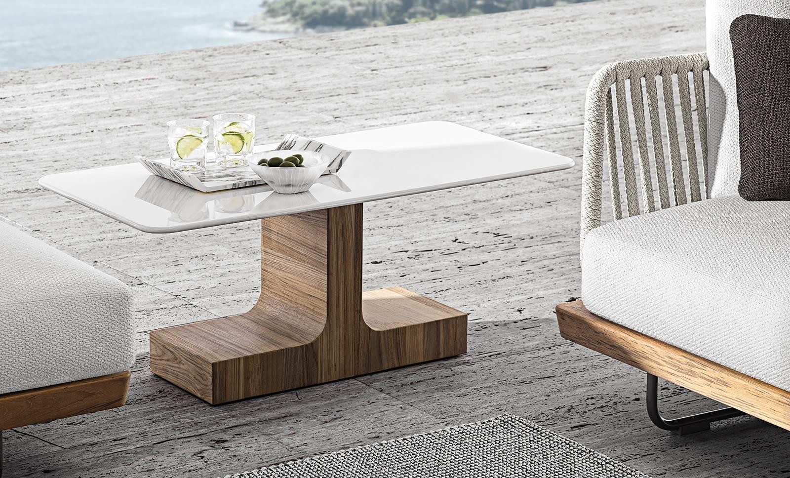 The Block Outdoor coffee table is available in two different heights, both with rectangular top.
