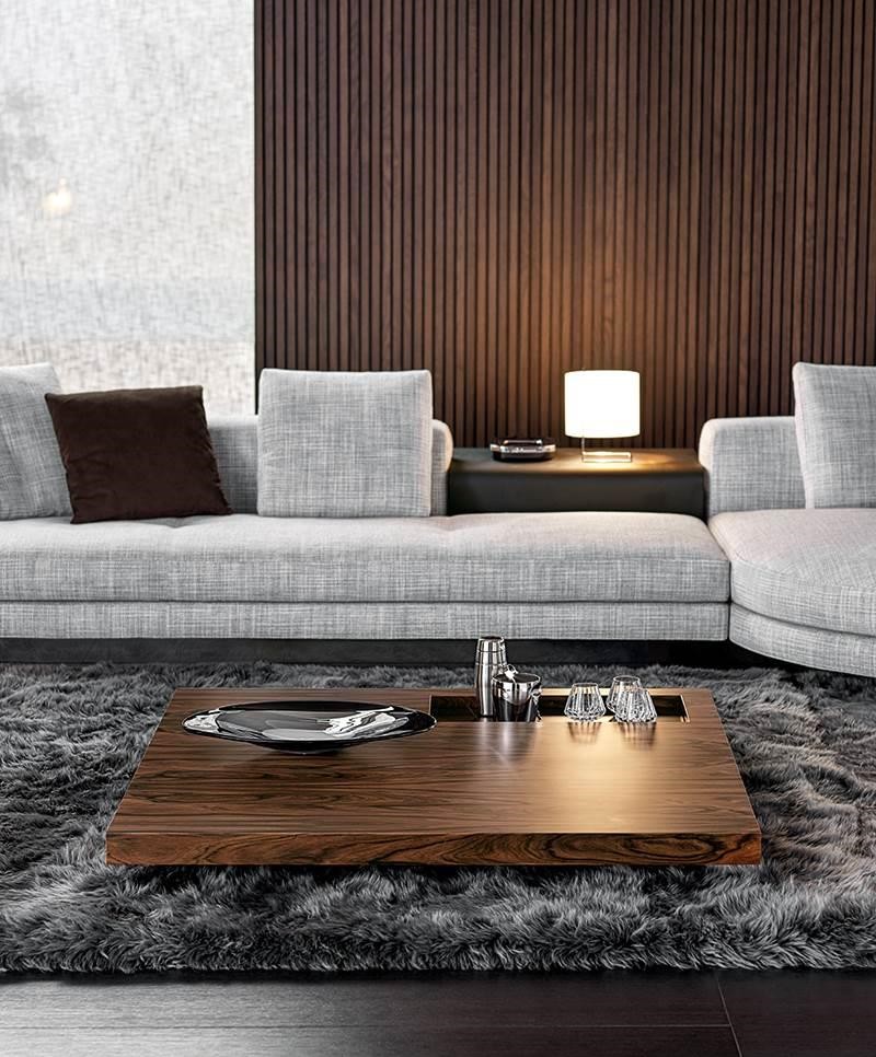 The clever juxtaposition of different materials and their combination, creating an elegantly harmonious look, are the result of the research done by the Brazilian design studio, supported by Minotti’s know-how to manage joint projects.
