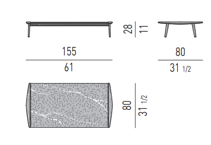 Elongated and slightly curved, rounded and smooth to the touch, it is completely handmade: its precise, well-defined line identifies the entire family, composed of armchair, lounge and dining little armchairs, benches, footstools, coffee tables in different sizes and a dining table.