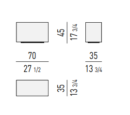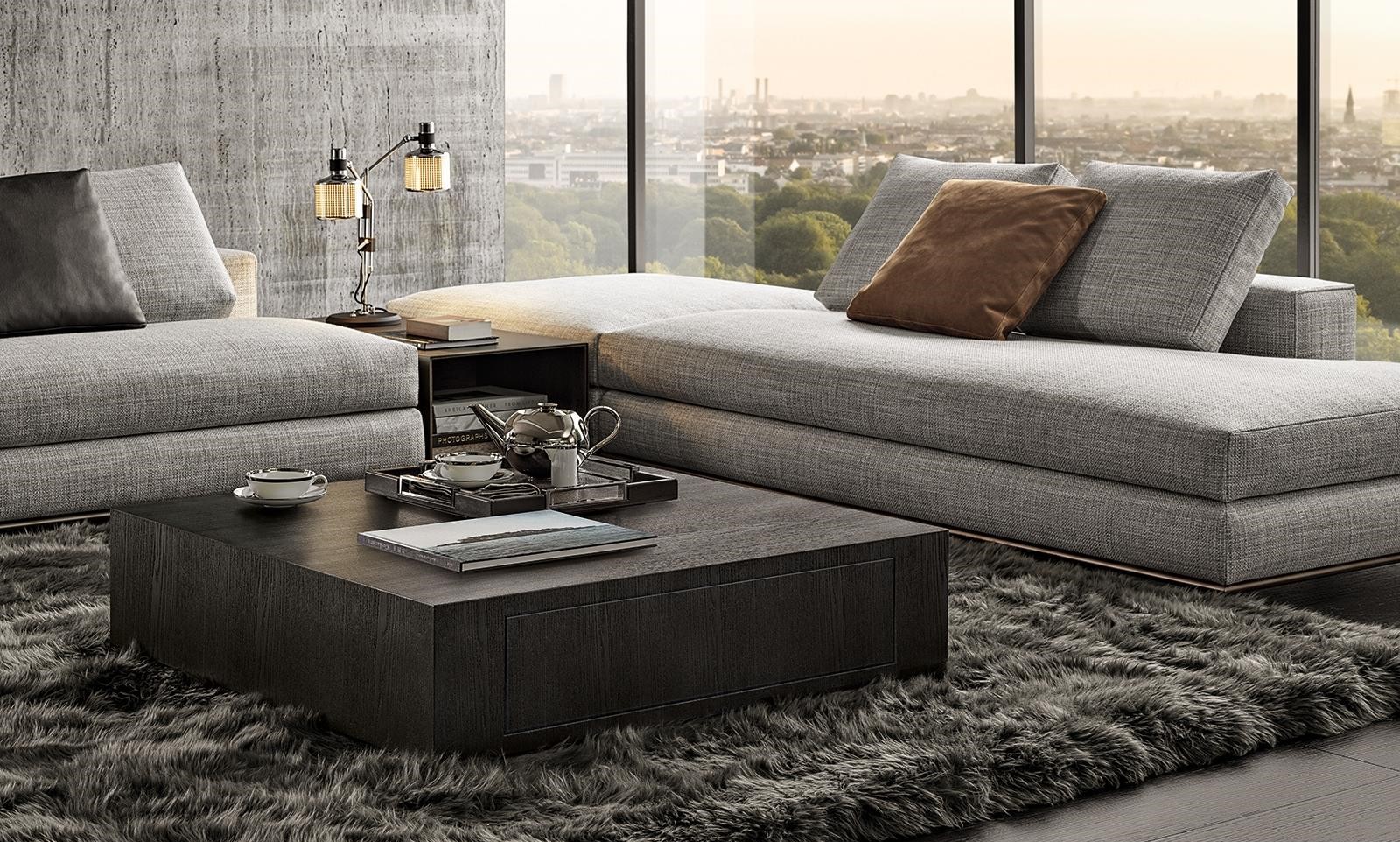 They range from the parallelepiped volume, which is tall enough to be set alongside a dining table as an additional seat, to coffee tables for holding or storing objects, and nightstand for the sleeping area. The rich ensemble is completed by the console table, which sits on metal blade-like legs with a Black-Nickel finish.