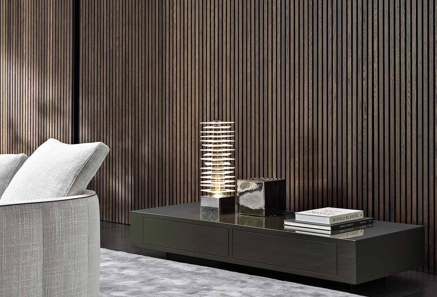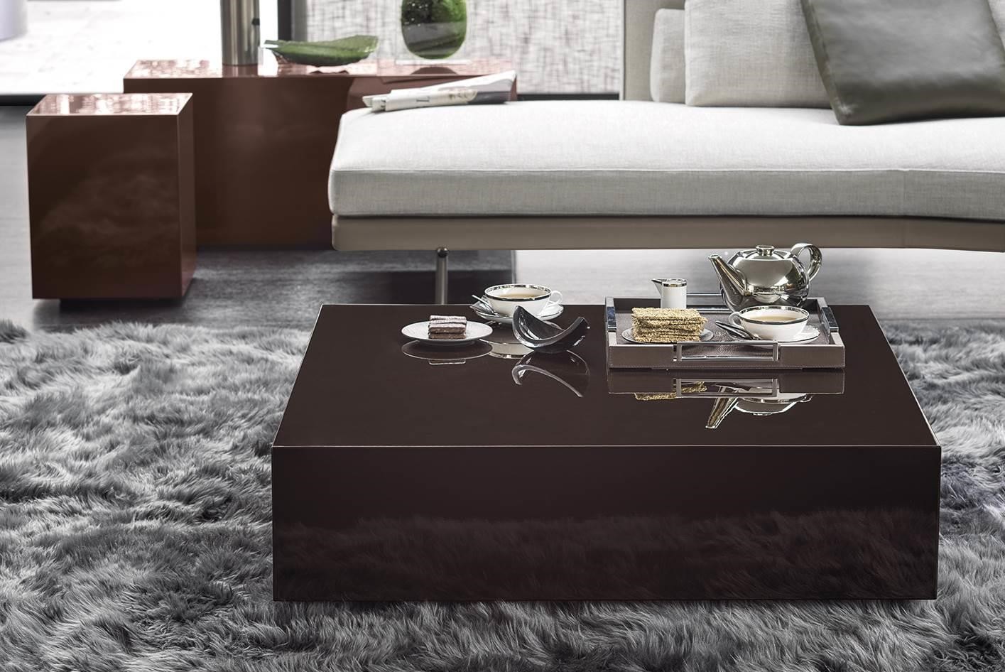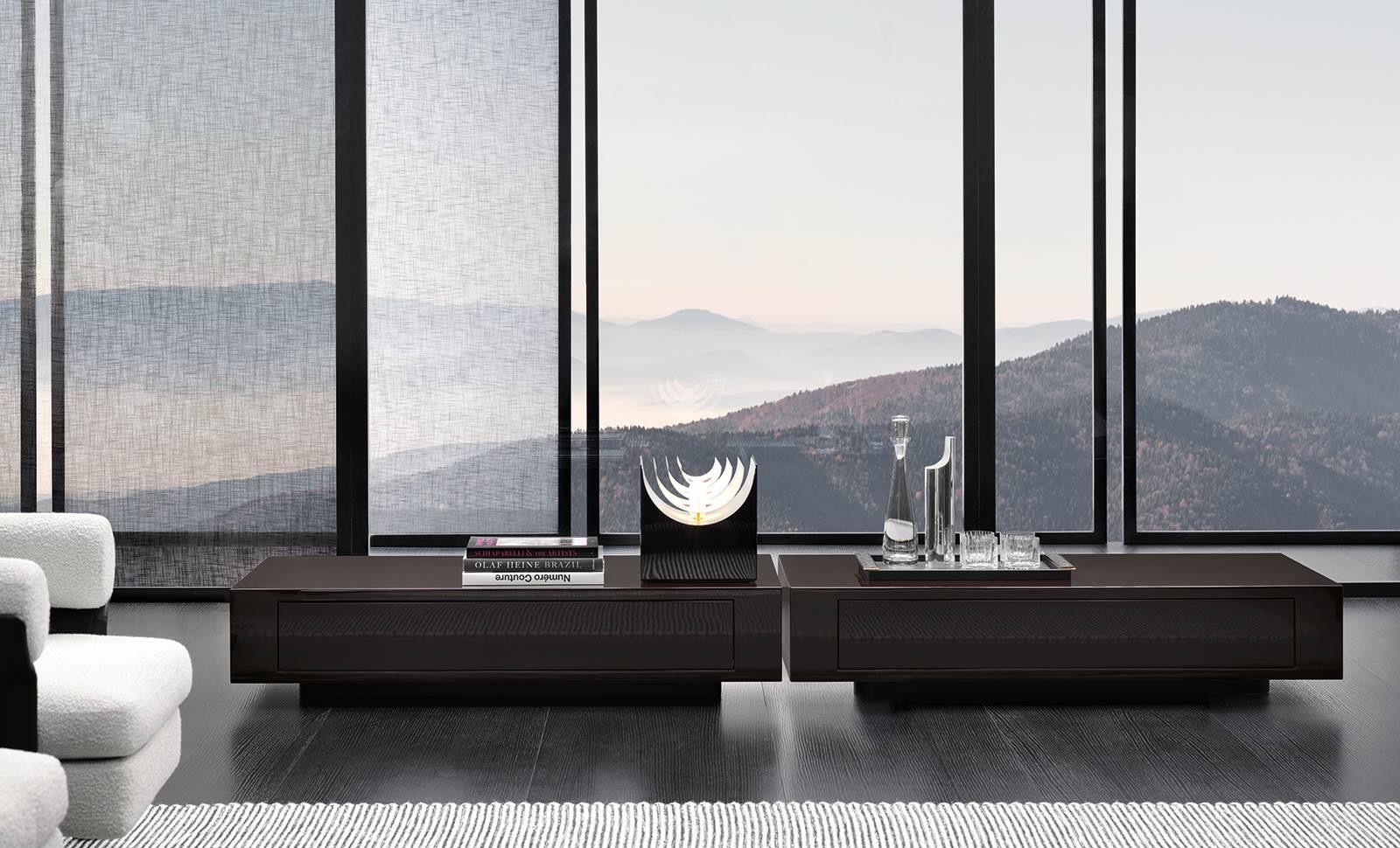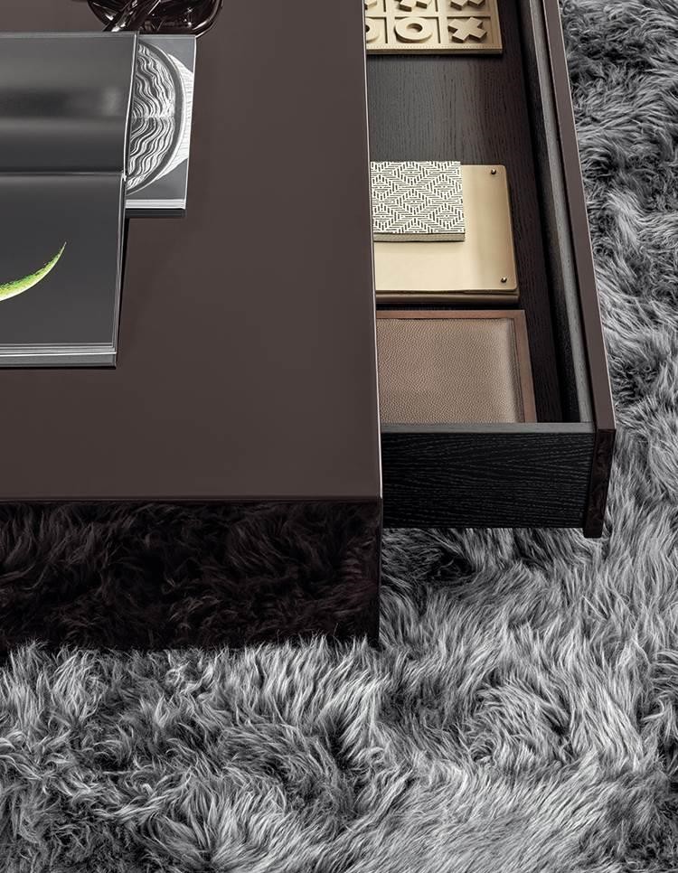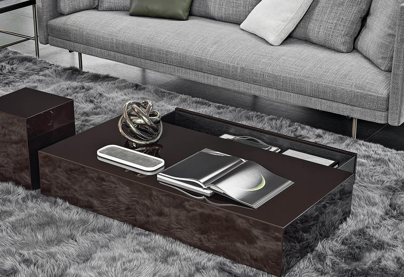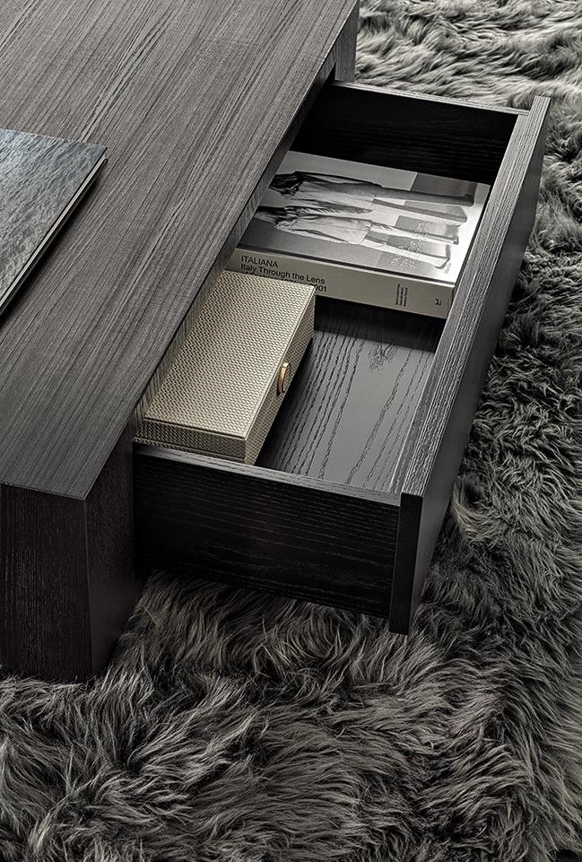 The Solid coffee tables, in all sizes, are available both in the glossy lacquered version in the colours Corten, Muschio, Petrolio and Moka and in the open-pore ash finish in Moka colour. Some of them are useful storage elements thanks to drawers, with interior in Moka-coloured ash and push & pull opening, almost imperceptible by the eye thanks to their perfect aesthetics.