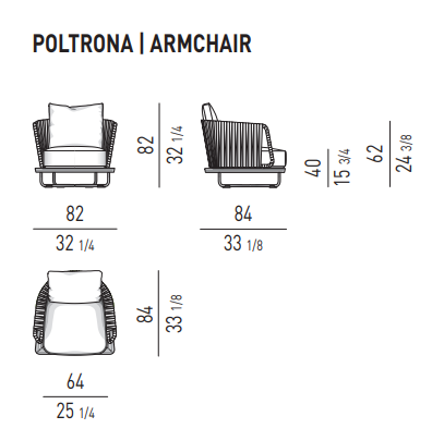 The system, composed of pieces that can be used alone or combined together, offers a variety of compositional solutions thanks to the high versatility of its elements. The family is composed of armchair, sofa, end element with or without extending top, chaise-longue, loveseat, daybed with reclining backrest, and square and rectangular coffee tables.