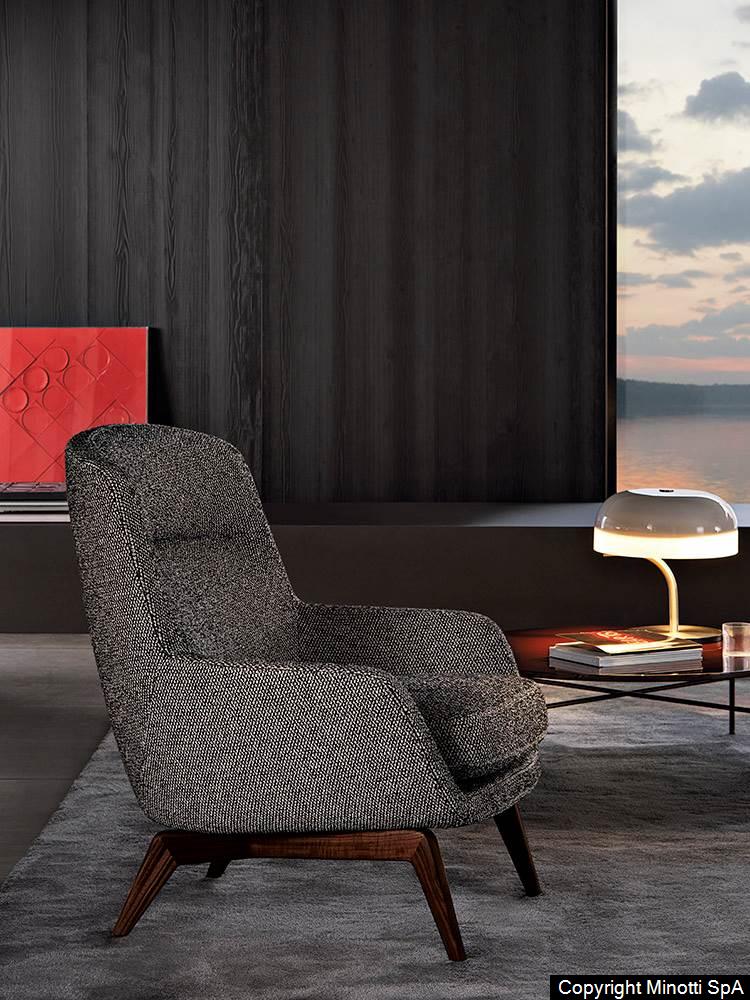 The distinctive characteristic and inspiration behind the Belt family, designed in the all-fabric or leather versions, is the idea of a belt that draws the profile of the body, encircling it, then breaking off and fastening on the front of the seat.