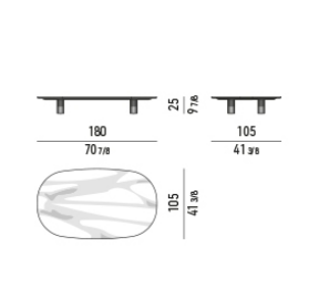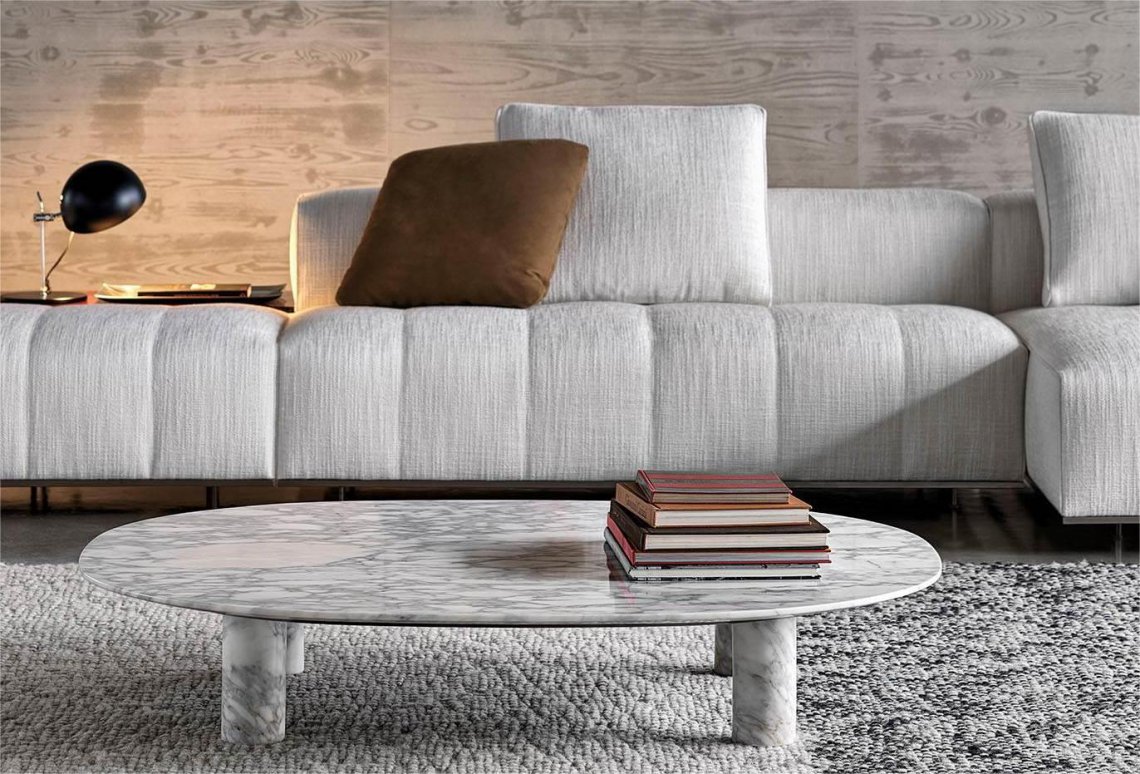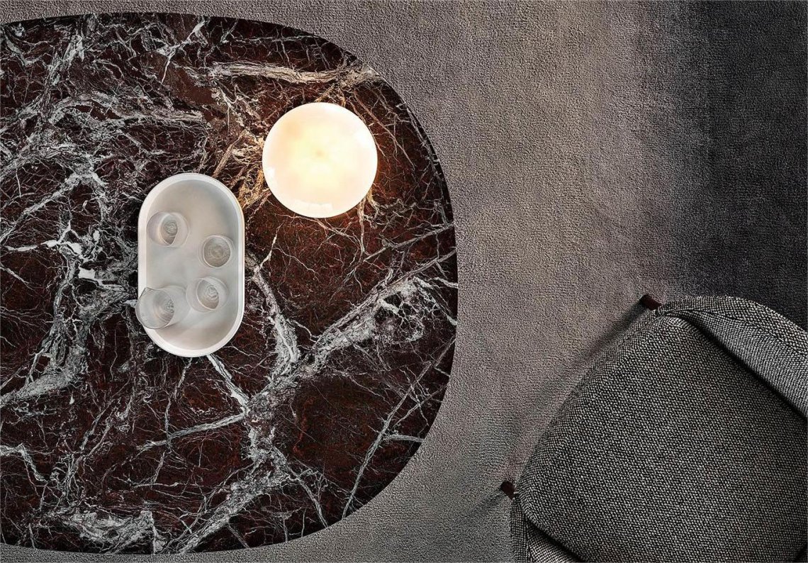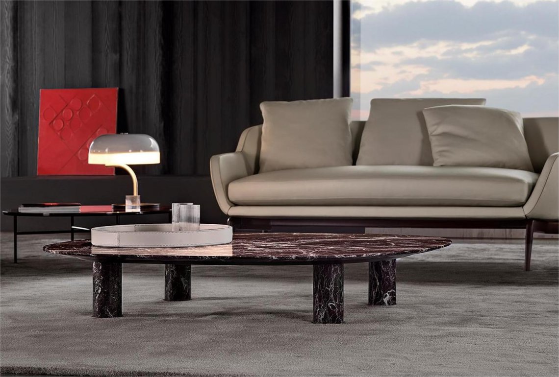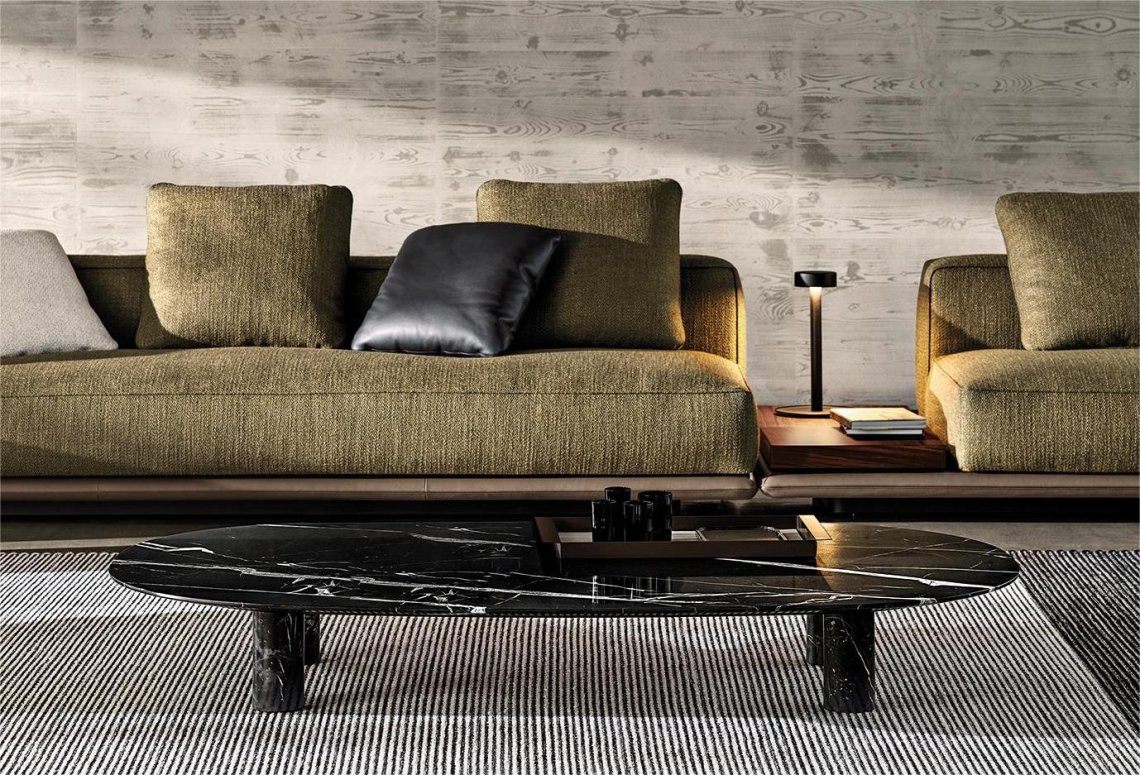 Made of marble, it declares its aesthetic power thanks to a special treatment that makes it opaque and silky, except the marbles Nero Marquina and Calacatta, which are polished. The choice of marble available is the result of careful chromatic and stylistic research that makes this family of tables easy to combine with the other furnishing pieces in the Minotti range: Nero Marquina, Calacatta, Verde Alpi and Rosso Levanto.