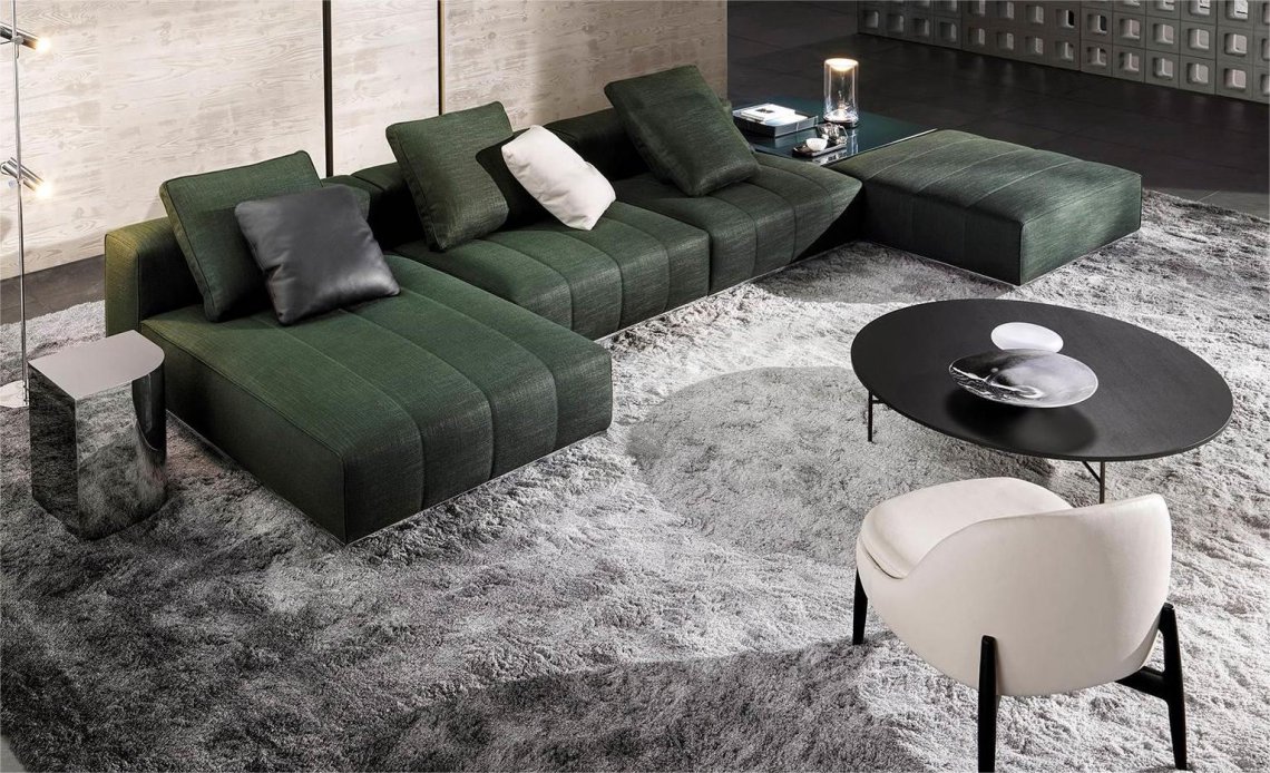 With a clear 1970s imprint, the inspiration behind this design is the graphic character of those years, its ability to stratify and cross marks, reducing the complexity of things into a few distinctive features. In this way, in Goodman the mark of the matelassé stitching, typical of Minotti's tailoring processes, draws shadows and light on the seat, creating the sensation of a quilted cross-padding.