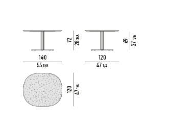 The tables can be completed by adding the Lazy Susan swivel tray, 60 cm in diameter, made of fine-grained polished Basaltine stone with a contoured edge and chamfered lower part.