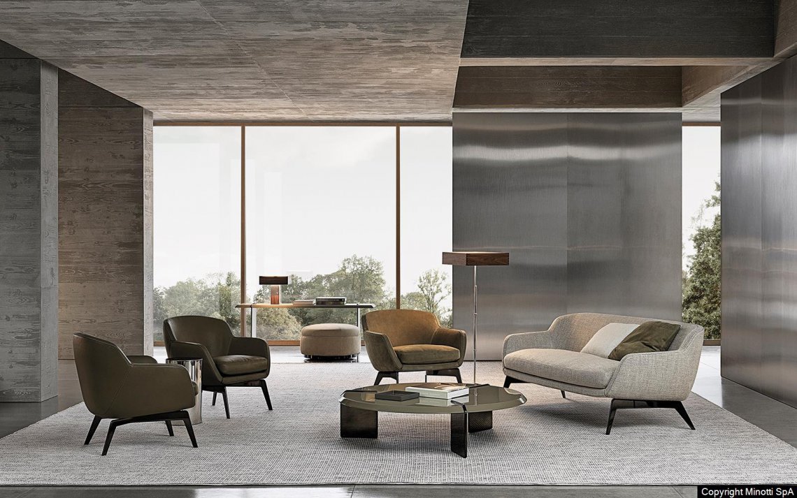 The distinctive characteristic and inspiration behind the Belt family, designed in the all-fabric or leather versions, is the idea of a belt that draws the profile of the body, encircling it, then breaking off and fastening on the front of the seat.