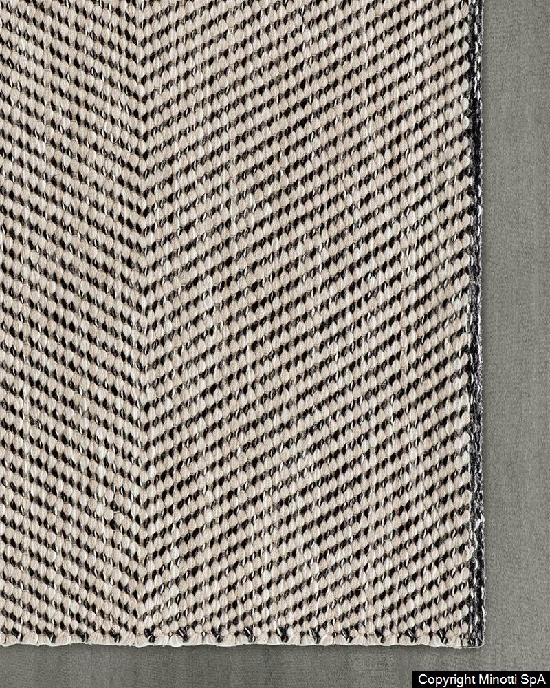Made with the same materials and techniques as the Osaka rug, with which it shares the same characteristics, the Chevron variant features a dynamic continuous decorative motif, composed of tweed that underlines the couture esprit of the craftsmanship.