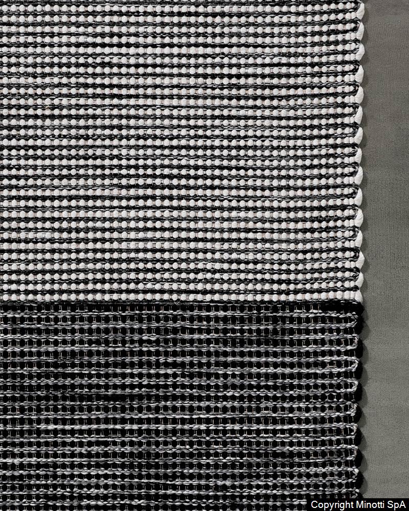 Available in the colour Ash/Graphite and characterised by a ton-sur-ton chromatic effect, the rug lends itself to settings with a contemporary character; Osaka Flag is available in various shapes - round, square and rectangular - and even customised sizes.
