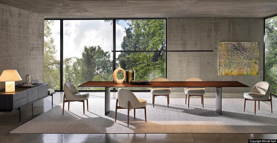 The compact and well-proportioned silhouette of both the seats and the small sofa, opens up to a new way of using the dining space: as a living room within the living room, a hybrid situation, such as when dinner is served on a large table, while guests meet and socialise round a lounge table.