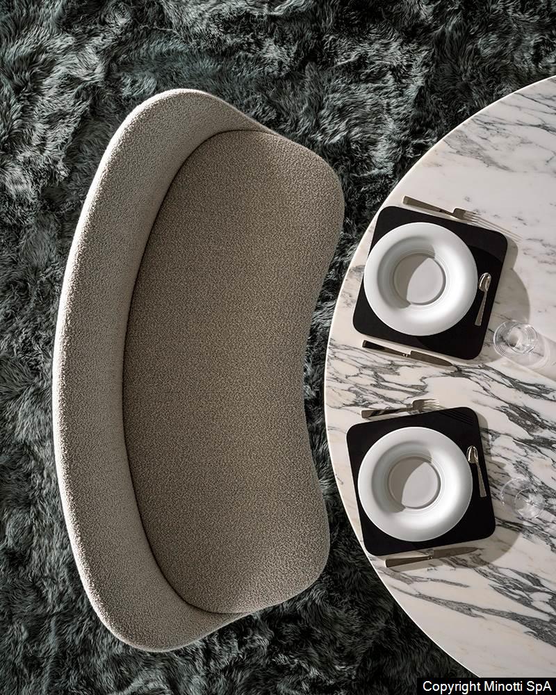 The compact and well-proportioned silhouette of both the seats and the small sofa, opens up to a new way of using the dining space: as a living room within the living room, a hybrid situation, such as when dinner is served on a large table, while guests meet and socialise round a lounge table.