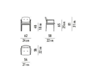 The wooden frame has a joint where the leg meets the armrest, both at the front and at the back: a structural joint that becomes decorative thanks to the clever use of the wooden material. In this project, the great expertise in woodworking that has always been characteristic of Nordic and Japanese craftsmanship meets the historical know-how of a Made in Italy company that has been an expert in exquisite upholstered furniture for decades.