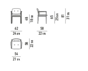 Delicate and sinuous lines, created with precious cabinet-making interlocking techniques that enrich the structure of legs and armrests in solid ash open pore wood lacquered with a Liquorice colour, or in solid Canaletto walnut stained Light Brown, a chromatic choice that lends a more decisive tone to the elegance of the silhouette.