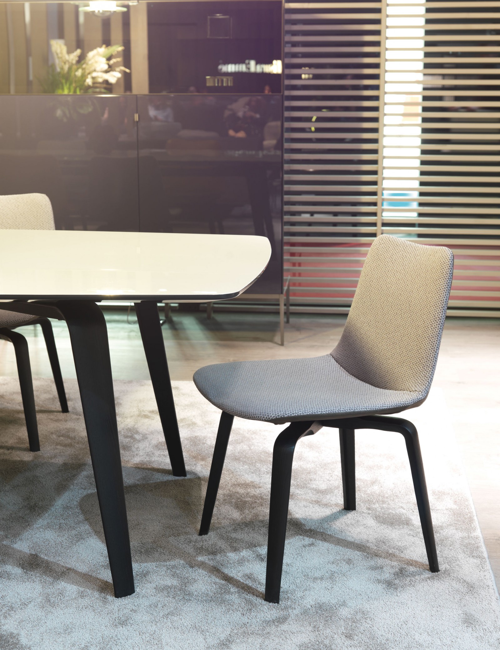 濃縮設(shè)計精髓的多用途軟墊座椅。實木椅腿支撐人體工學(xué)的椅靠,結(jié)合了兩種不同的調(diào)性材質(zhì)選擇。