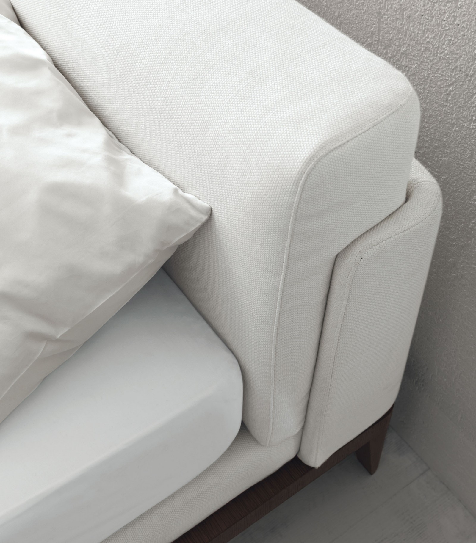 堅固的木質底座,視覺上被極為流線的床頭板和撐腳所柔化,形成完美比例。