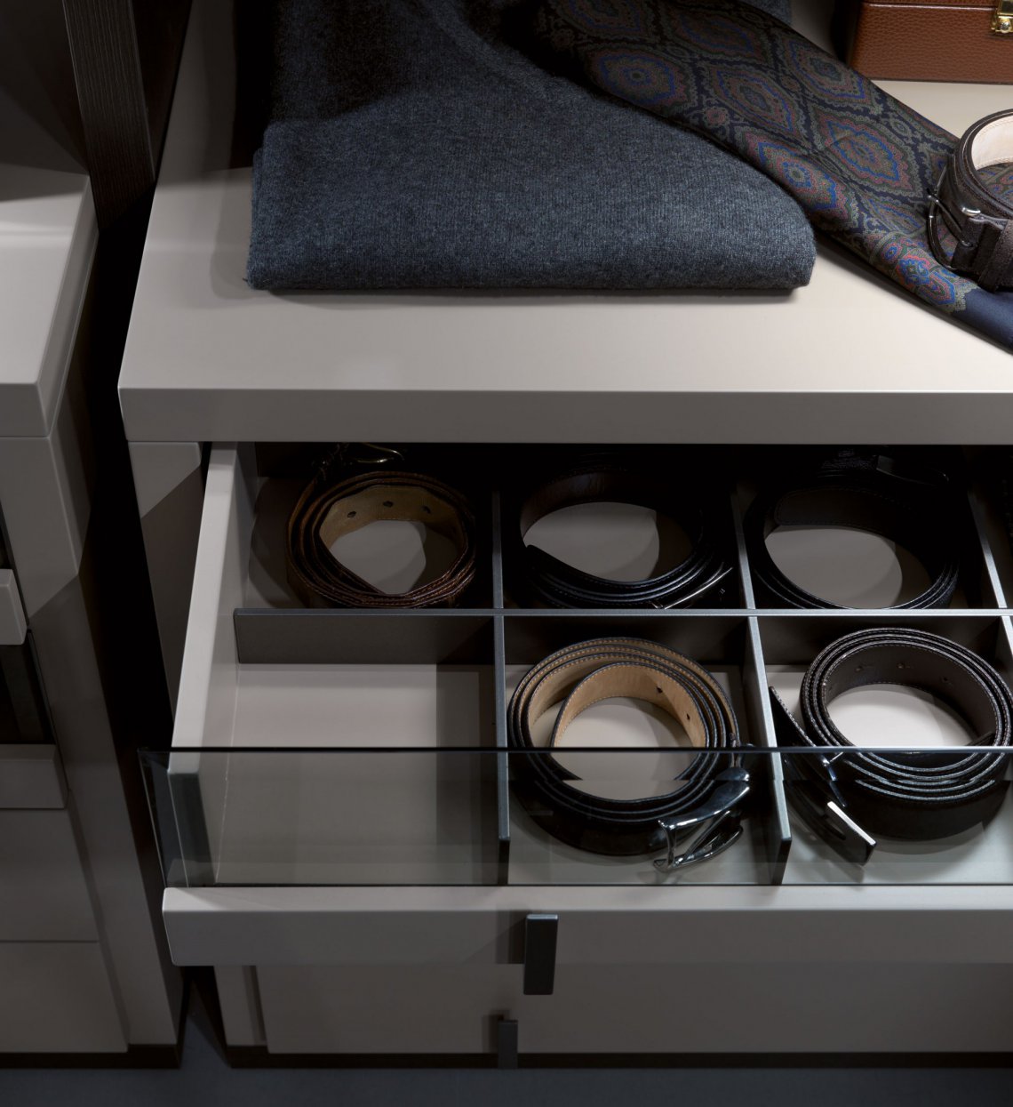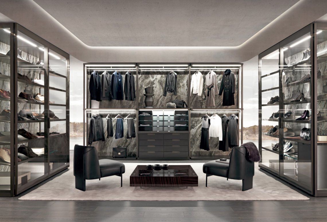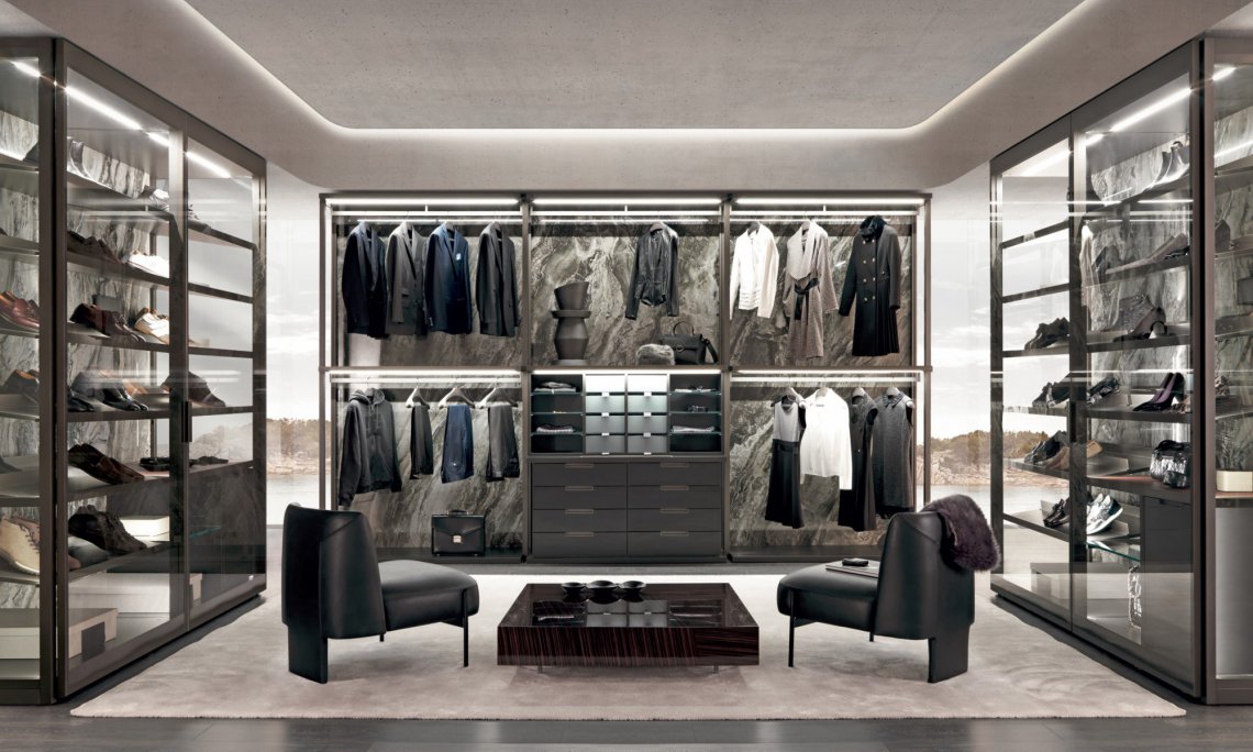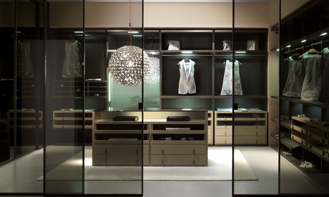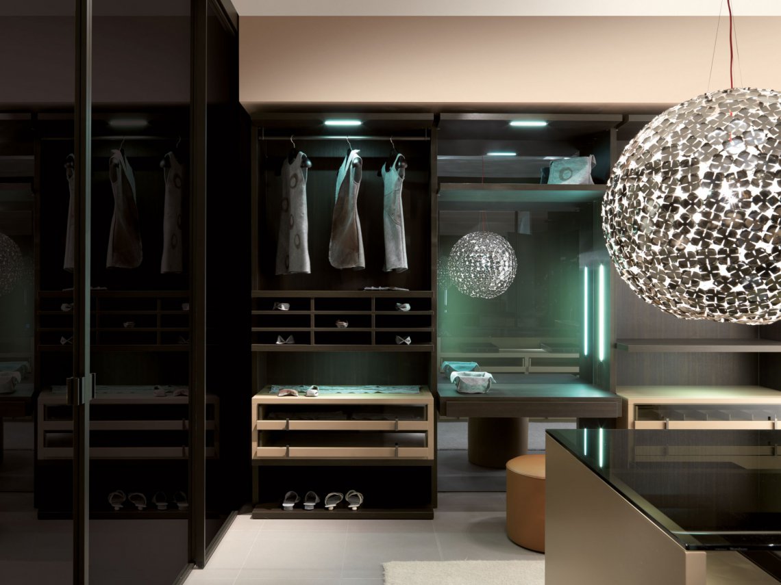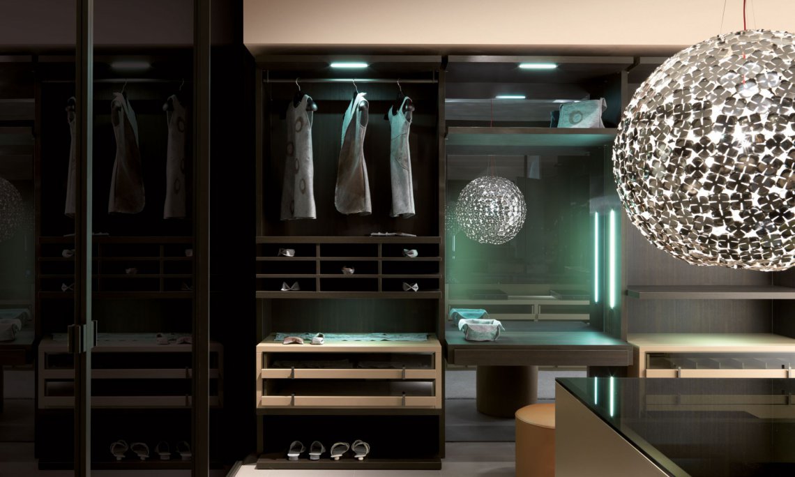 致力彰顯衣柜空間的獨特魅力:可 根據客戶需求,私人定制模塊化設計及各式配件選擇,以滿足現代人對步入式衣帽間多元化的需求。