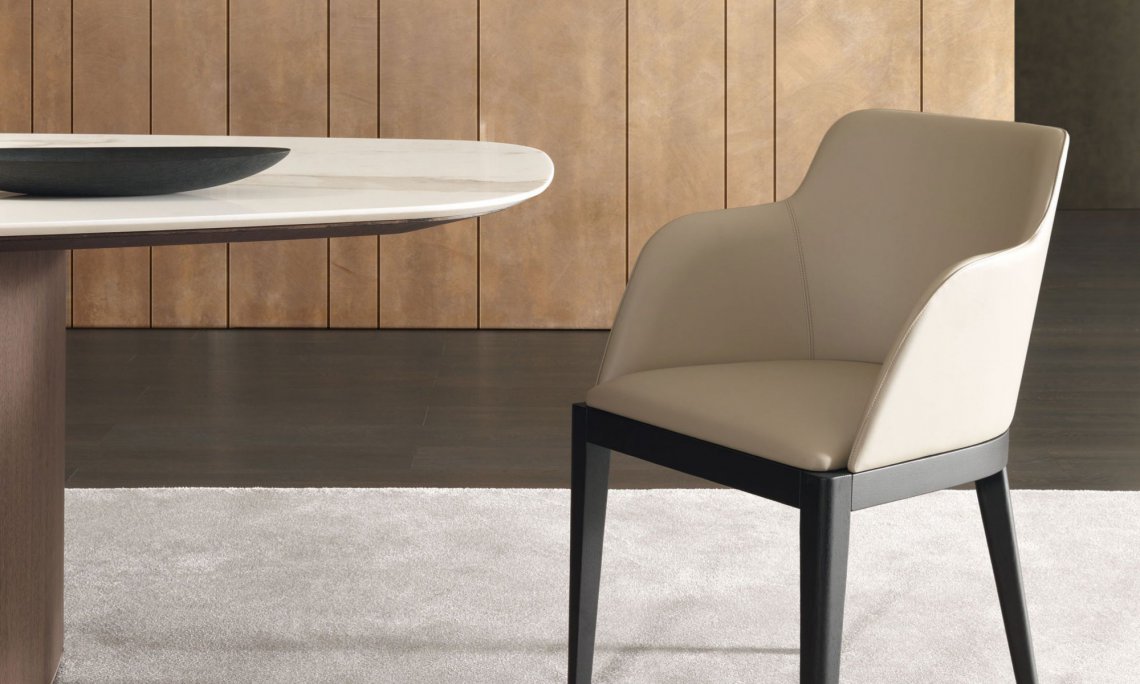 Cleò是一種將古典風格與當代情調融合一起的產品。實心橡木撐腳,線性形狀設計被光滑的彎形靠墊所柔化。表面材質可選灰橡木色,黑色或碳橡木色,軟墊也可選用織物或皮革,高低兩種靠墊式樣。