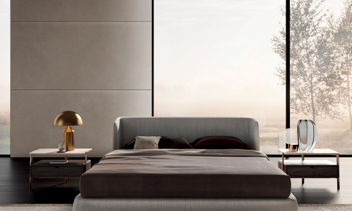 床造型飽滿豐盈的Frida床,具有排骨床架可作兩個位置靈活停留,底座備有超大空間,存儲性能強大。