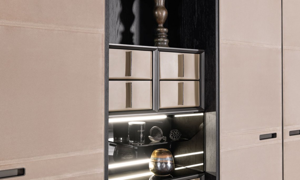 現代與傳統的完美結合,營造出靈動雅致的空間。精工的皮革走線巧妙結合內嵌把手設計,方形輪廓的布局外觀,彰顯意式時尚優雅風范。