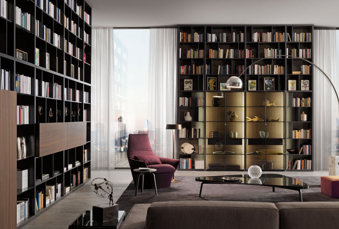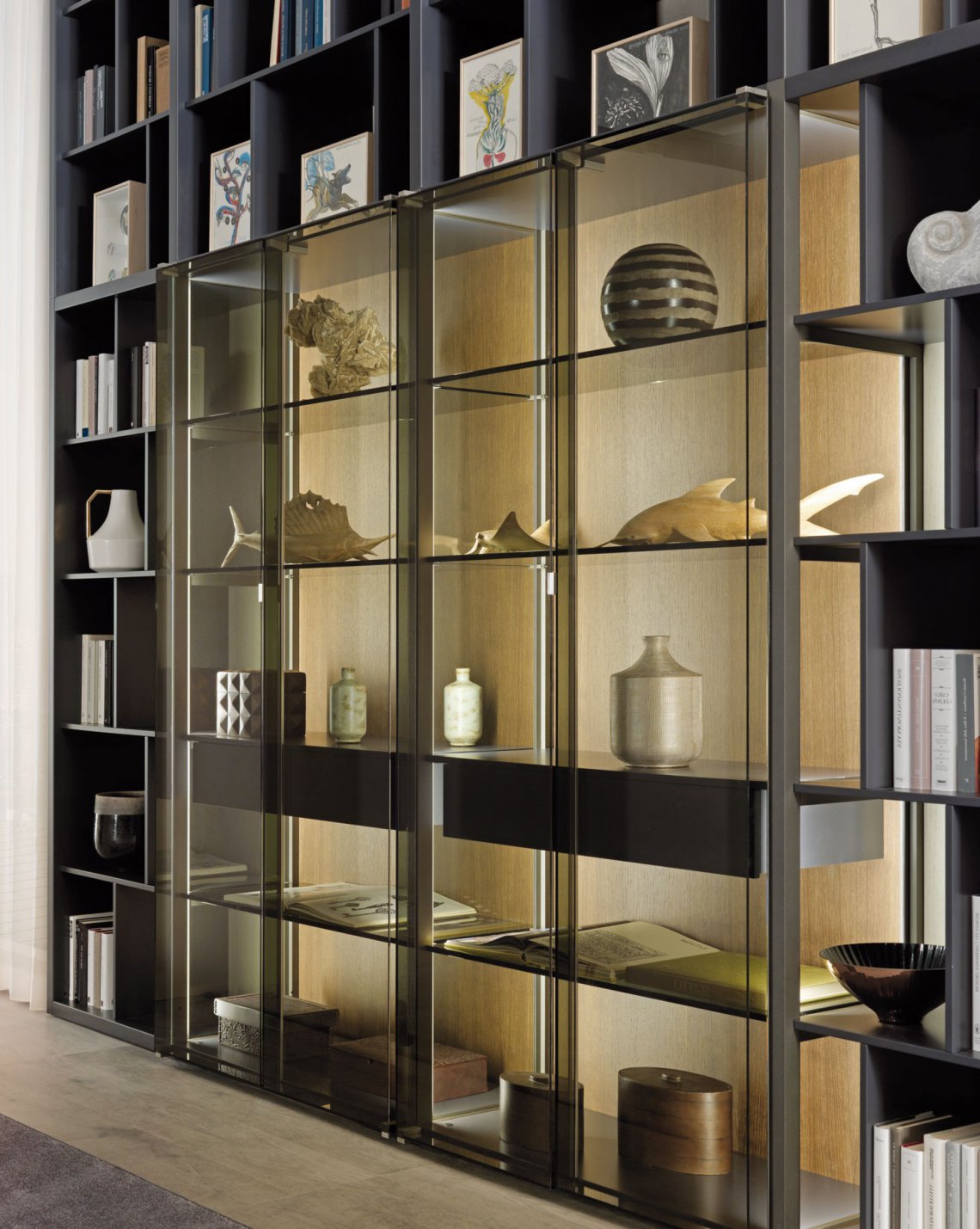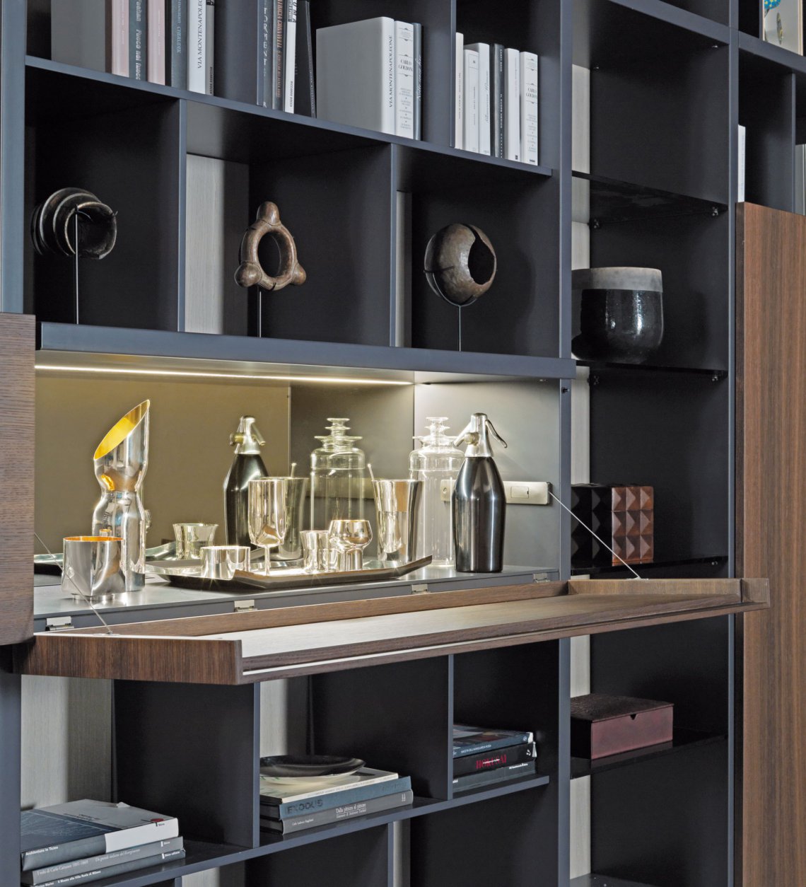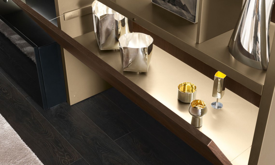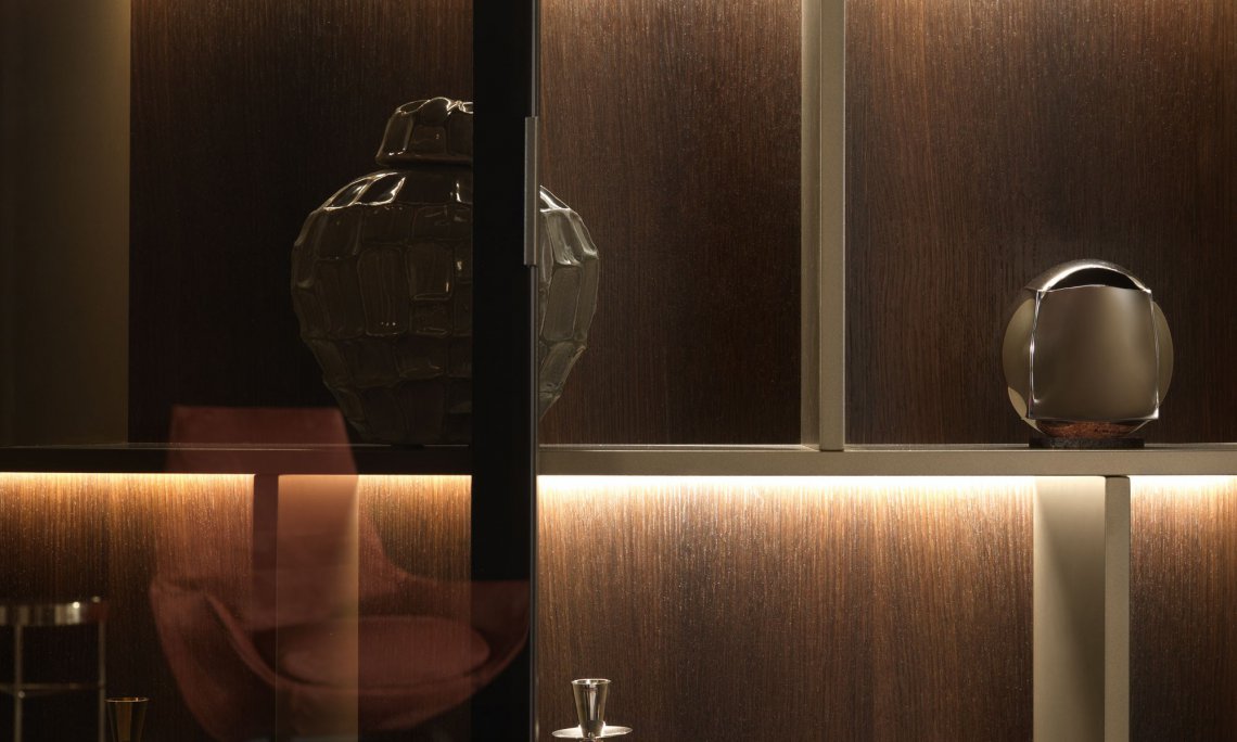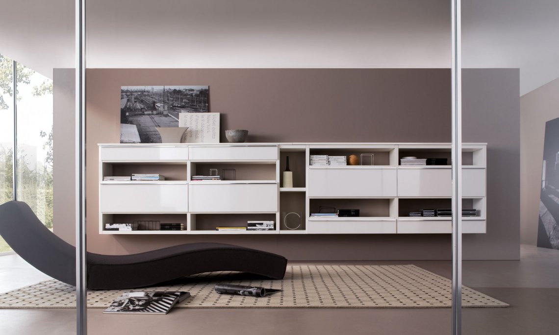 Crossing墻體系列巧妙融合多種不同的潮流元素,包含交替的層架,帶上、下翻門及三維立體玻璃門的吊柜,呈現(xiàn)通透明亮的視覺效果。柜體內(nèi)部配置定制LED照明系統(tǒng);鉸鏈門配置阻尼開關(guān)系統(tǒng)。集美感與功能設(shè)計(jì)于一體。真正的創(chuàng)新刷新了書箱的概念。它所組成的嵌板,重量輕,使書柜懸掛起來,賦予了一種全新的“可見明度”的感覺。