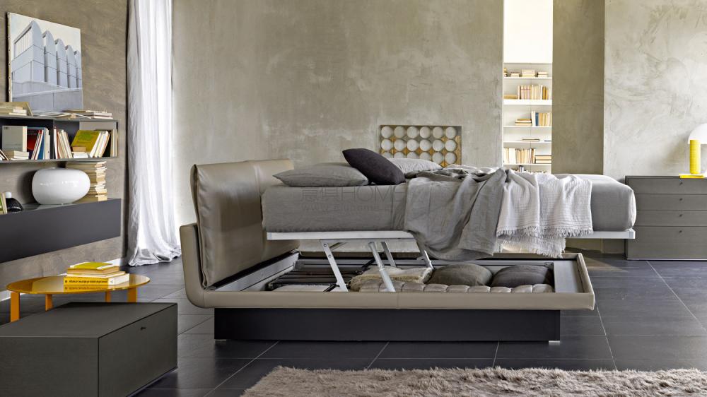 一個簡單而優雅的床,其特點在于織物或皮革的飾面,材料和剪裁工藝是一位最精致的“女設計師”的典型手法。Honey是一張線條現代,尺寸緊湊,設計用于不同臥室環境的軟床。床墊下的儲物箱帶有一個搖動裝置,用于輕松拿取物品,同時可以水平移動實現方便的鋪床。