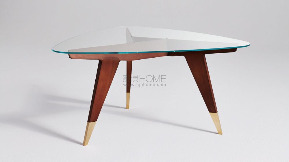 建筑、泛藝術(shù),雜技般的比例關(guān)系和連接接口處理。一個品味無窮的茶幾,玻璃和玫瑰木之間的幾何對話–輕快并從抽象中萃取精華。D.552.2茶幾,木質(zhì)框架帶玻璃桌面,當(dāng)時為美國公司設(shè)計。D.552.2用玫瑰木實木制成,黃銅桌角,三角形超清玻璃玻璃桌面,屬于當(dāng)時為美國市場設(shè)計的一系列產(chǎn)品之一。由Molteni&C重新投產(chǎn)的D.552.2茶幾屬于Gio Ponti產(chǎn)品系列之一。