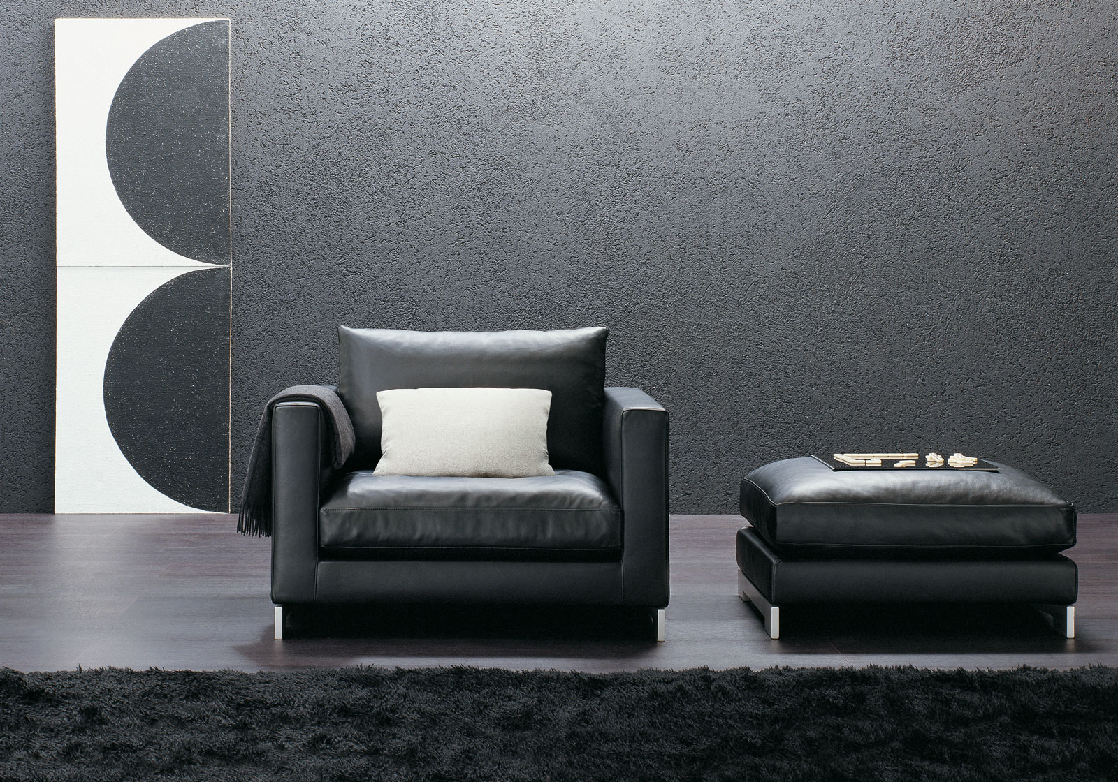 包括腳榻和扶手椅的Reversi沙發系列風格上回到Art Deco的裝飾藝術風格:外形莊重,寬大而舒適的體量。沙發腳電鍍處理。