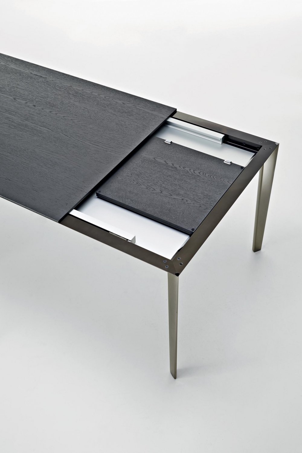Filigree餐桌可以選用一系列不同尺寸或者可伸縮款式。高光和亞光壓鑄鋁制框架支撐著臺面,豐富的材質選擇提升了價值感。通過隱藏的可橫向折疊五金系統實現可伸縮餐桌功能。整張桌面為一個整體,并可以通過延伸的桌面擴大尺寸。桌腿盡量外置以最大限度地利用空間,桌面極其纖薄,值得一提的是用于容納伸縮桌面功能件的空腔結構內部只有38mm凈高。餐桌可選用不同的材料和飾面以滿足所有需要。