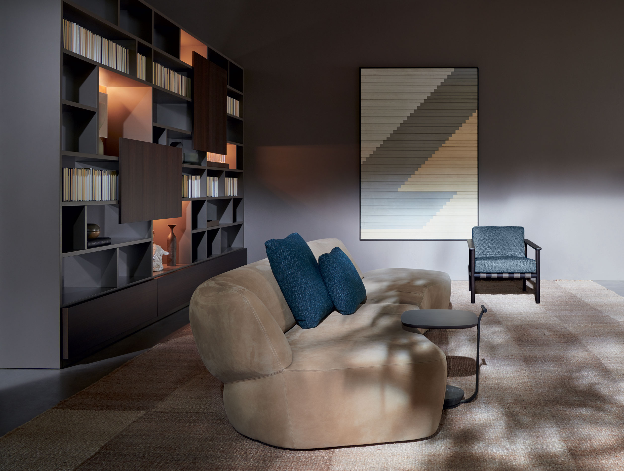 SURF 沙發(fā)選用 MOLTENI&C 產(chǎn)品系列的多種針織面料和皮革,使其顯得更加獨(dú) 特。SURF 沙發(fā)還搭配有一個(gè)優(yōu)雅的“代客”小桌,采用大理石底座和木制桌面,頂部 的小把手方便小桌移動(dòng),坐在舒適的沙發(fā)上時(shí),可以放置身邊的各種物品。