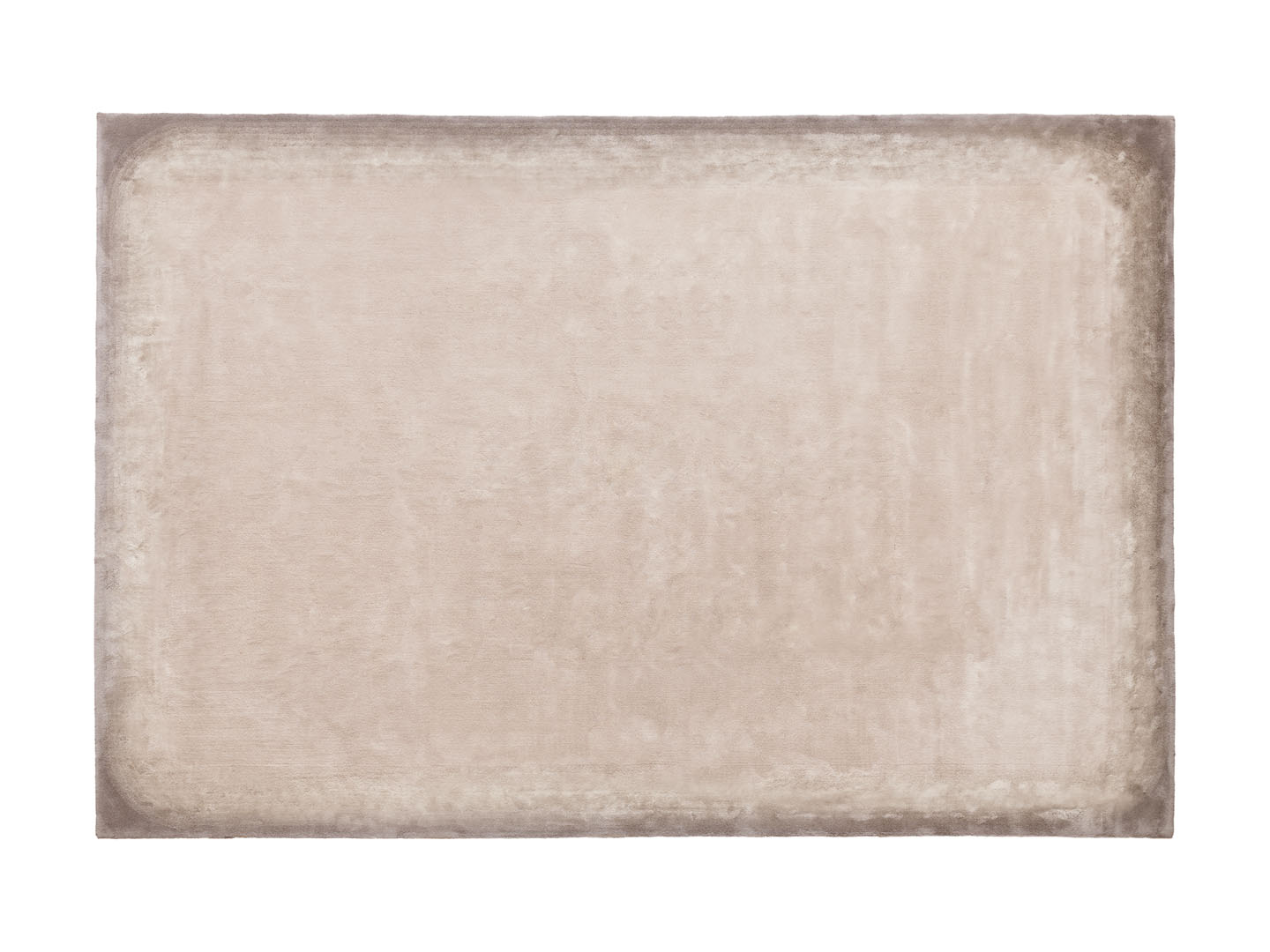 Wool and linen, materials from the most sophisticated tradition of carpet manufacturing, mixed in a new way for a new soft and bright feel. The conventional edge of the carpet, which frames the central field, reinvents the decoration using the colours of our memory. It is a return to simple and elegant chromatic lines.