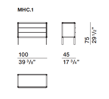MHC.1 is a new edition of the prototype of the first modern piece of furniture made by Molteni&C, the chest of drawers designed by Werner Blaser. Thought it was never produced industrially, in 1955 it won first prize at the Cantù “Prima mostra selettiva - Concorso internazionale del mobile”, a competition designed to re-qualify the image of Italian furniture making. The jury was made up of Gio Ponti, Alvar Alto, Romano Barocchi, Carlo de Carli and Finn Juhl. The unusual joinery features a simple three-fork joint.