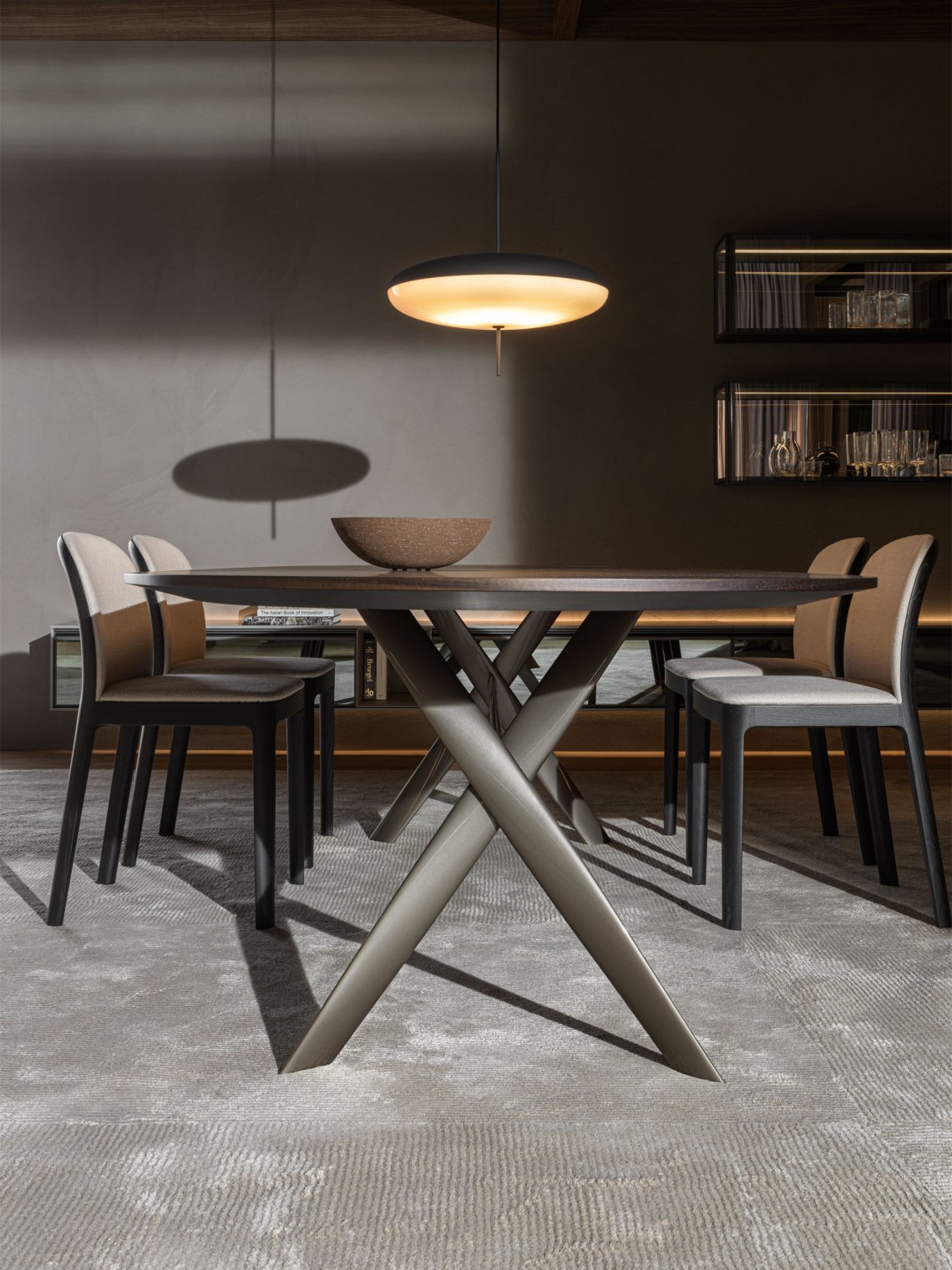 This table, designed by Milanese architect Rodolfo Dordoni, takes the name of London’s Gatwick airport, one of the busiest in the world. A hub where cosmopolitan travellers meet every hour of the day and night on their way in or out of the U.K. capital, much like a table where people meet for dinner.
