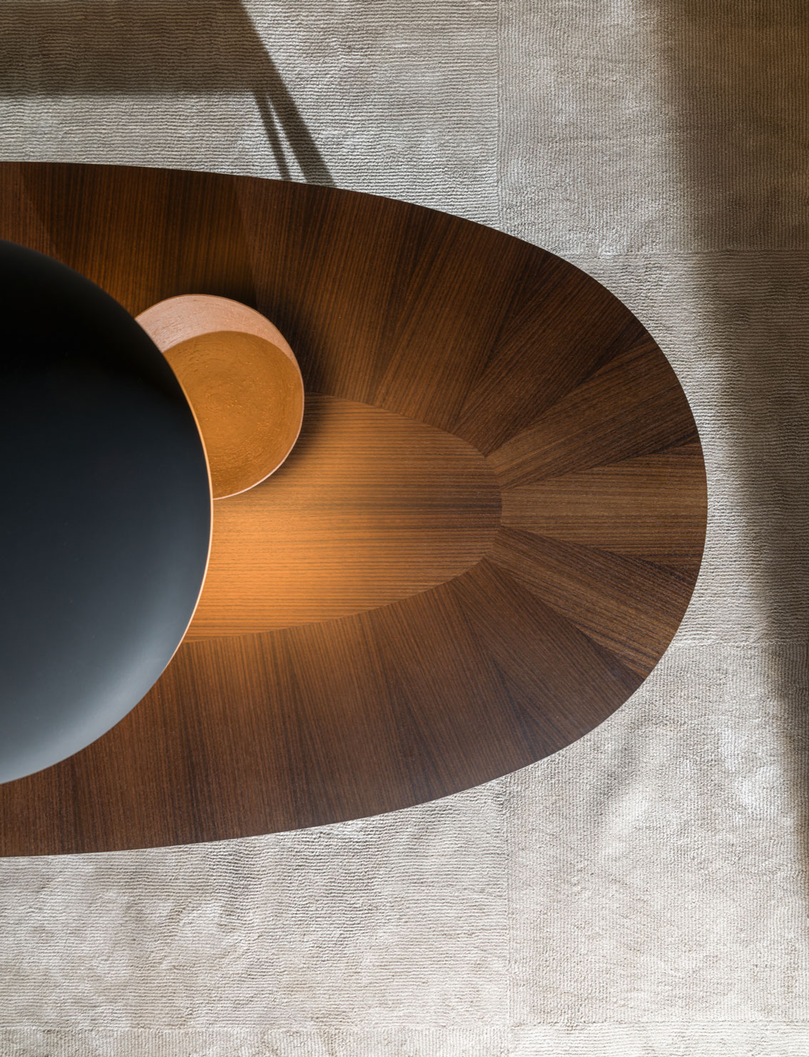 Gatwick, a table designed in 2019 by the architect Rodolfo Dordoni, has been renewed by providing the aluminium structure with a new Eucalyptus top featuring a sophisticated inlay design, in addition to the marble variants, already available in the Molteni&C collection.