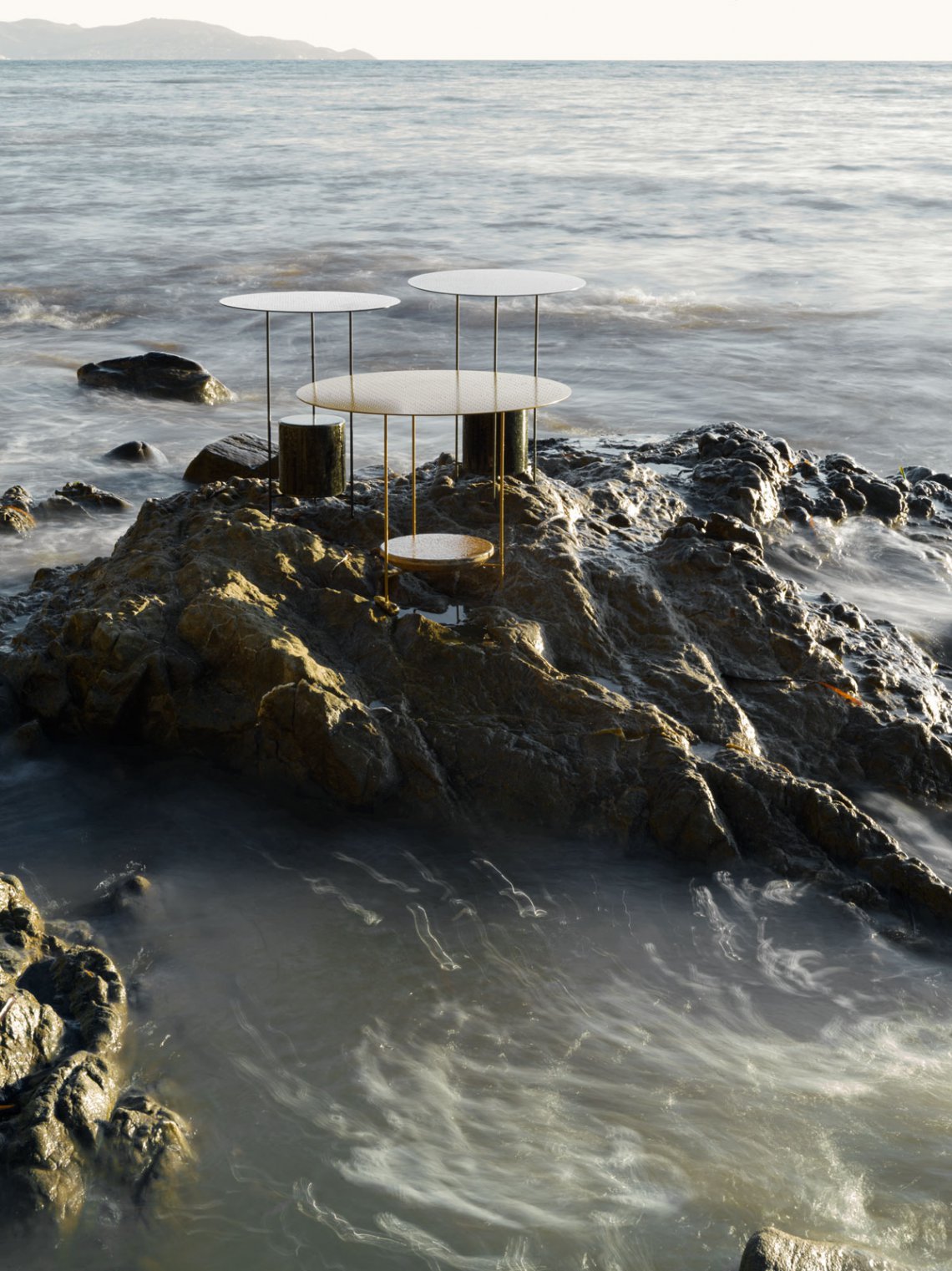 Panna Cotta, designed by Ron Gilad, represents a combination of delicacy and stability; there is a paradox in the use of materials such as marble and iron to achieve a fragile solidity.