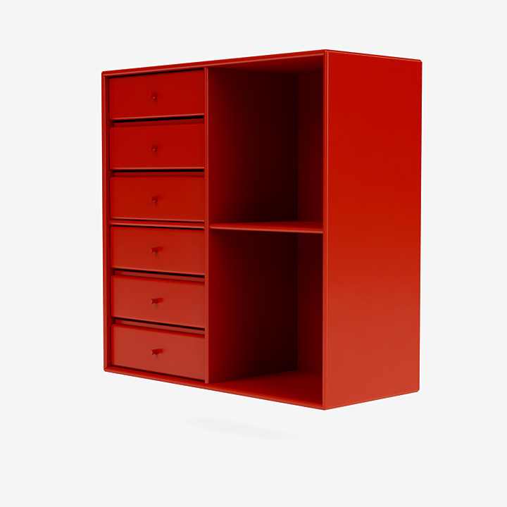 1623 架子有六個抽屜和兩個大型開放式隔間。該模塊提供了封閉式存儲空間和開放式隔間的實(shí)用且迷人的組合。開放空間非常適合展示您最喜歡的書籍、最美麗的花瓶或漂亮的碗。抽屜給人一種觸覺上的享受,因?yàn)樗鼈兛梢暂p松滑開,露出寬敞的內(nèi)部空間。該架子有 Montana 專門開發(fā)的 40 種環(huán)保漆色可供選擇。這一標(biāo)志性設(shè)計為家中幾乎所有房間增添了實(shí)用性和多功能性。該擱板可單獨(dú)使用,也可與 Montana 擱架系統(tǒng)的其他模塊結(jié)合使用。1623 擱板深度有 30、38 和 46.8 厘米可供選擇,并配有涂漆手柄。