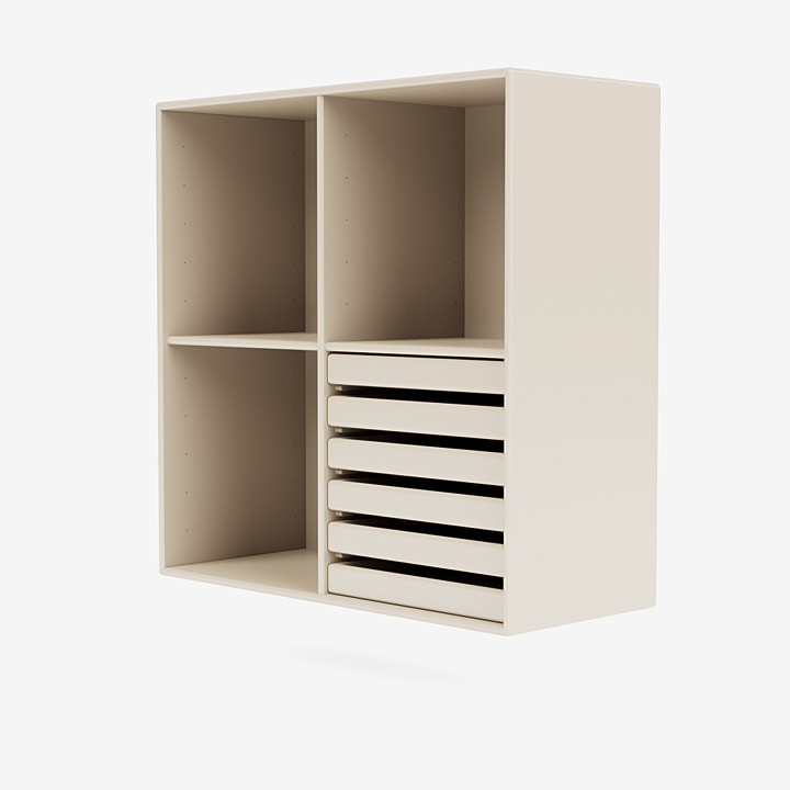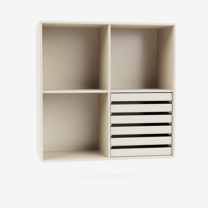 1627 架子有 3 個開放式隔間和 1 個帶有 6 個托盤的隔間。這是蒙大拿州的經典設計,非常適合客廳或辦公室的工作站。六個托盤非常適合存放重要文件,而大隔間則可以完美地用作書架或一般存儲空間。該架子有蒙大拿州全部 40 種環保漆色可供選擇。我們的色調經過專門開發,可以很好地相互配合。