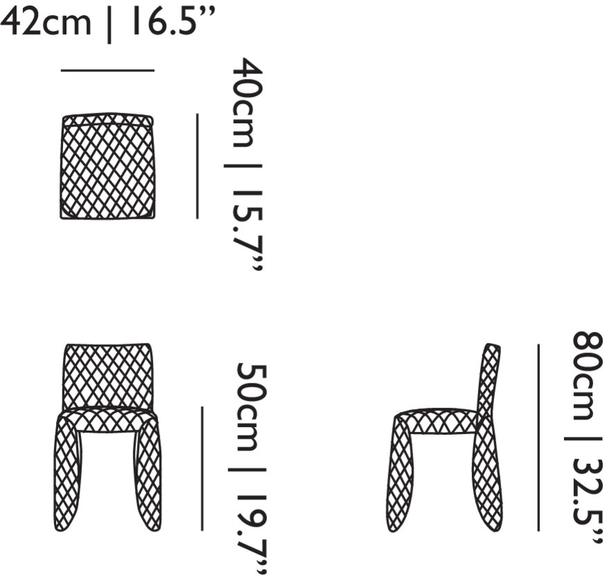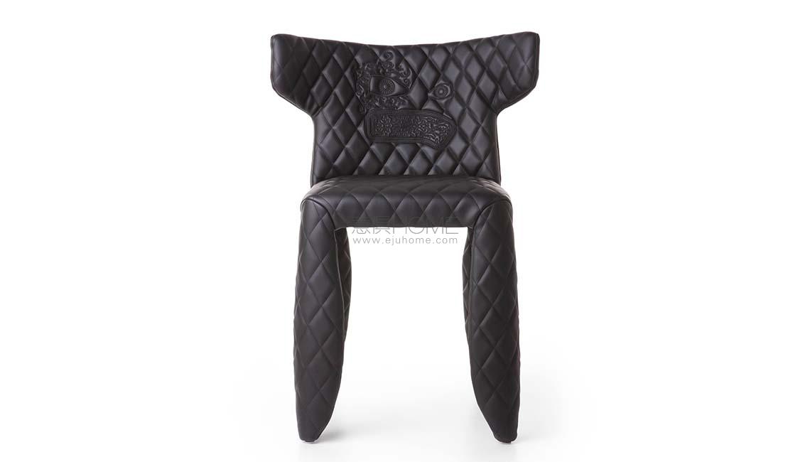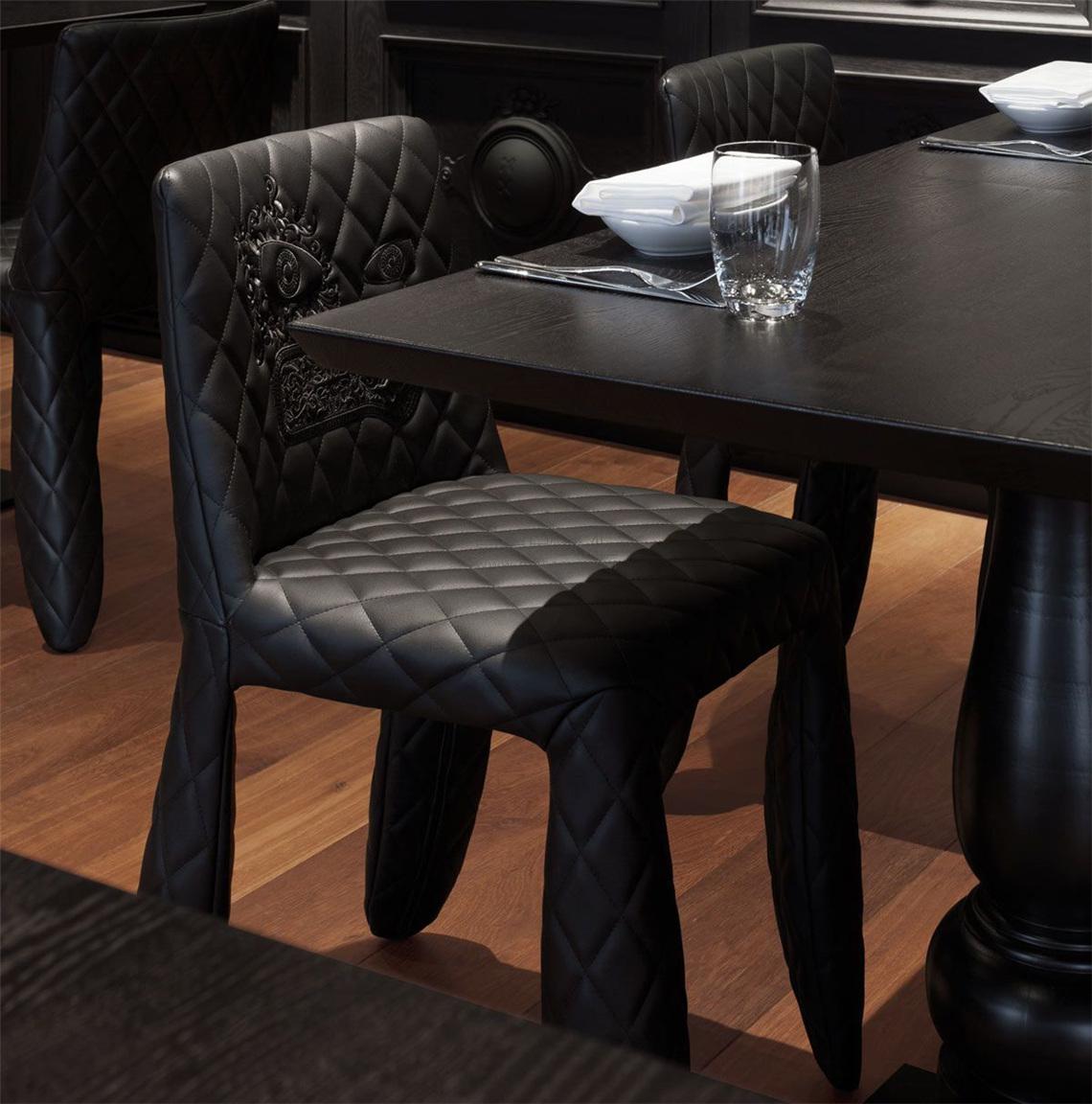 A soft, puffy and stylish chair as symbol of the eternal battle between opposite forces that take place in life and can be easily recognized inside ourselves, if we have the courage to open our eyes. Scary? Not at all! You forget all about the monster once you sit down and enjoy the chair’s comfort and softness. The signature version, the fearless leader of our Monster family, comes upholstered in Moooi Original Black Synthetic Leather with an embroidered face.