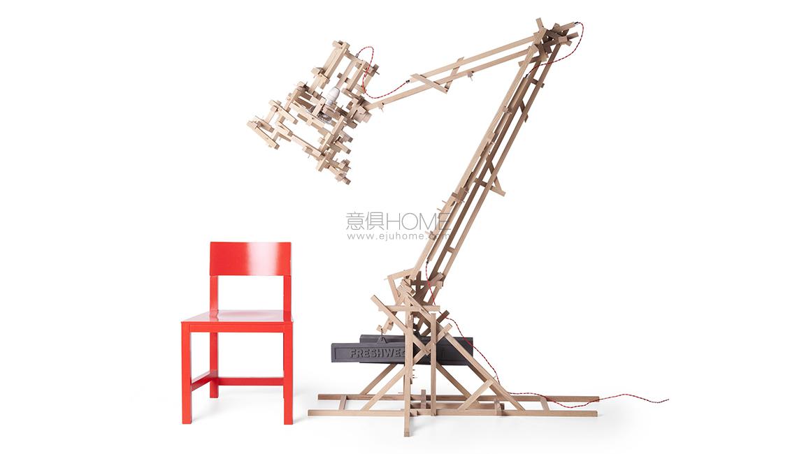 In a Brave New World, imagination is free to produce a complex lamp with simple materials, translating the warm soul of oak wood in a mechanical way.