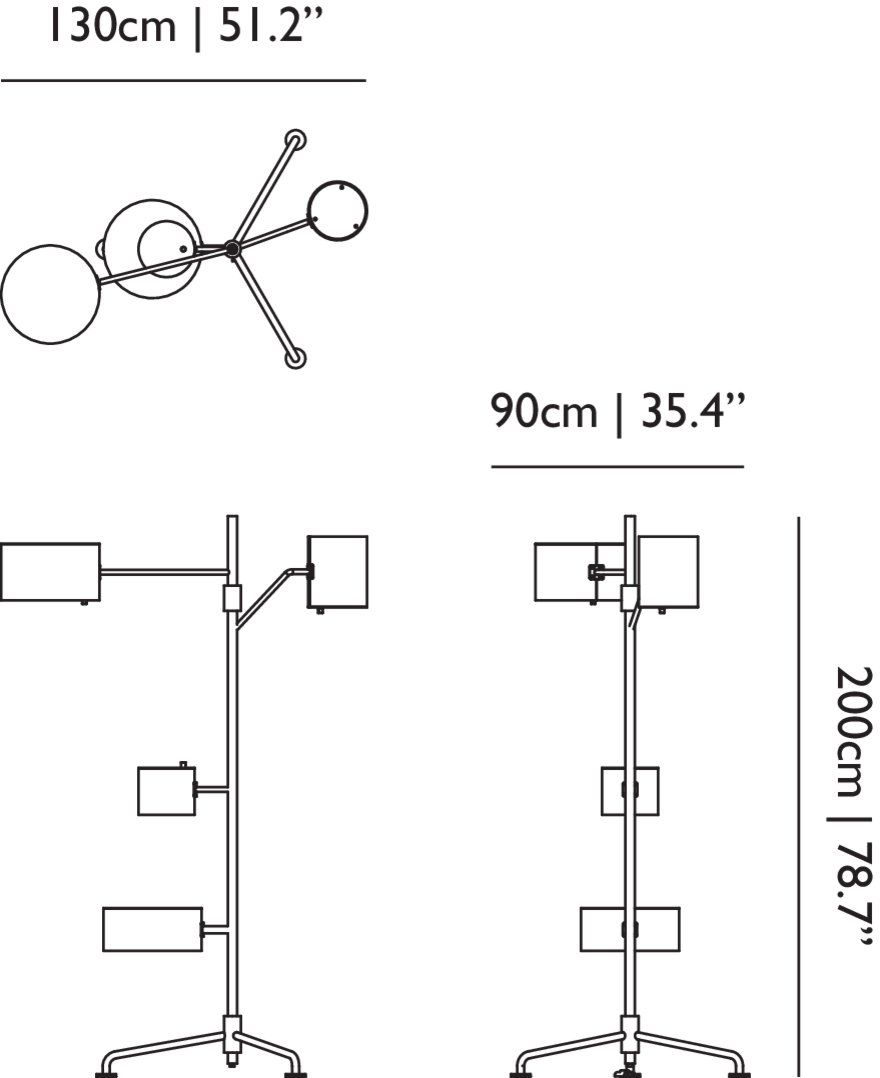 The floor lamp’s lean aluminium body is really multifunctional with its towering two meters and all-embracing light beams, the tallest shade projecting light towards the ceiling while the wider shade acts as the perfect reading lamp. And what about the two other shades? The lowest is no shade … but a surprisingly useful side table. Perfect to support a laptop or your favorite drink, it’s always in the spotlight!