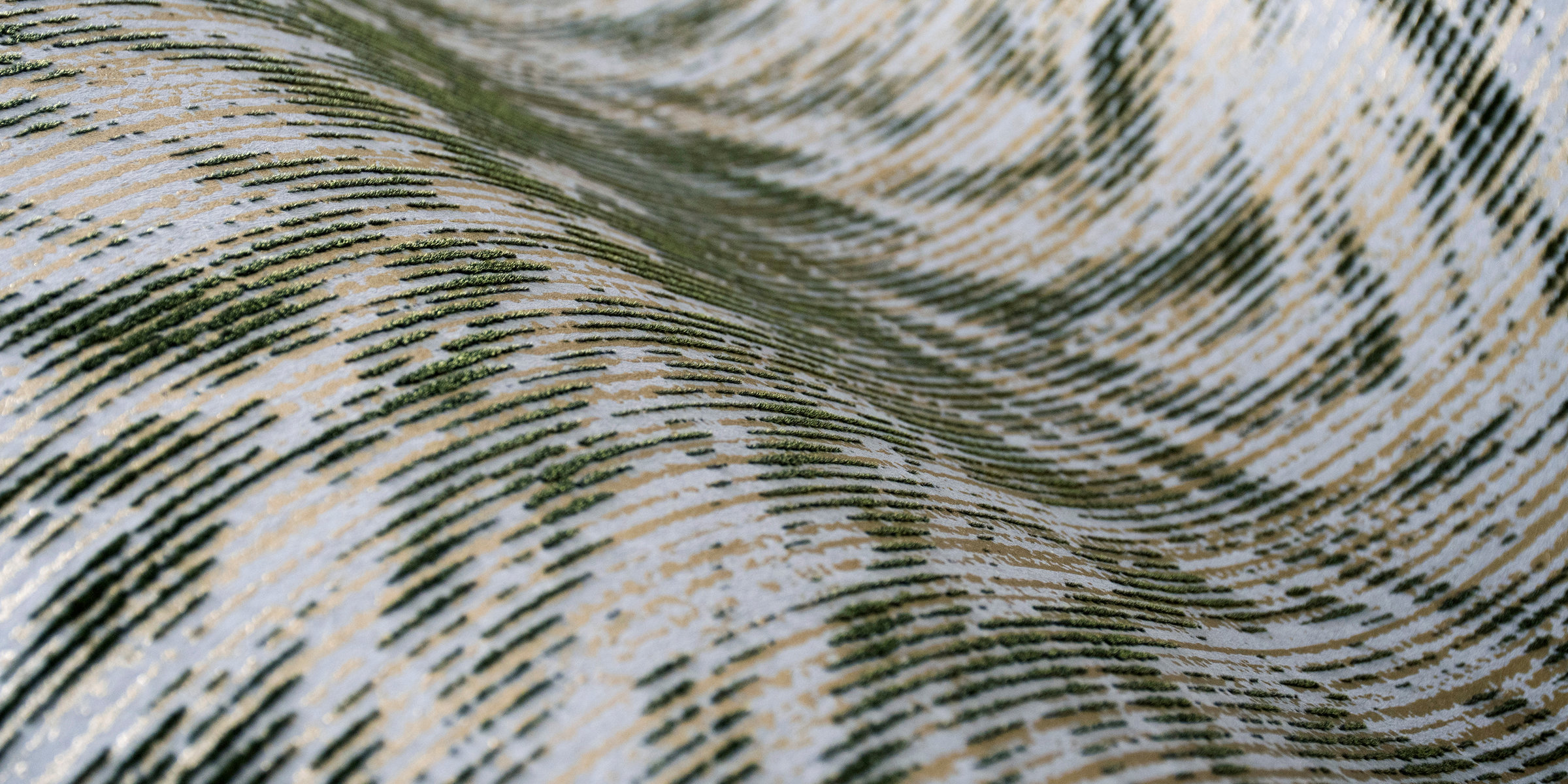 Printed wallcovering with a flock finish, resembling the beautiful fur of the Blushing Sloth, which lived its life so still and quiet that algae found a way of growing on the outer layers of their fur, giving them a breath-taking glow.