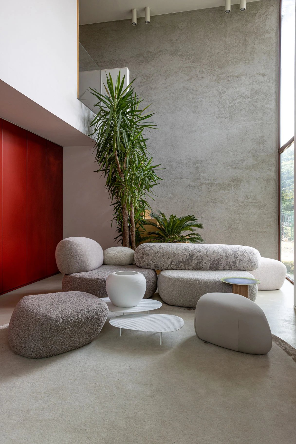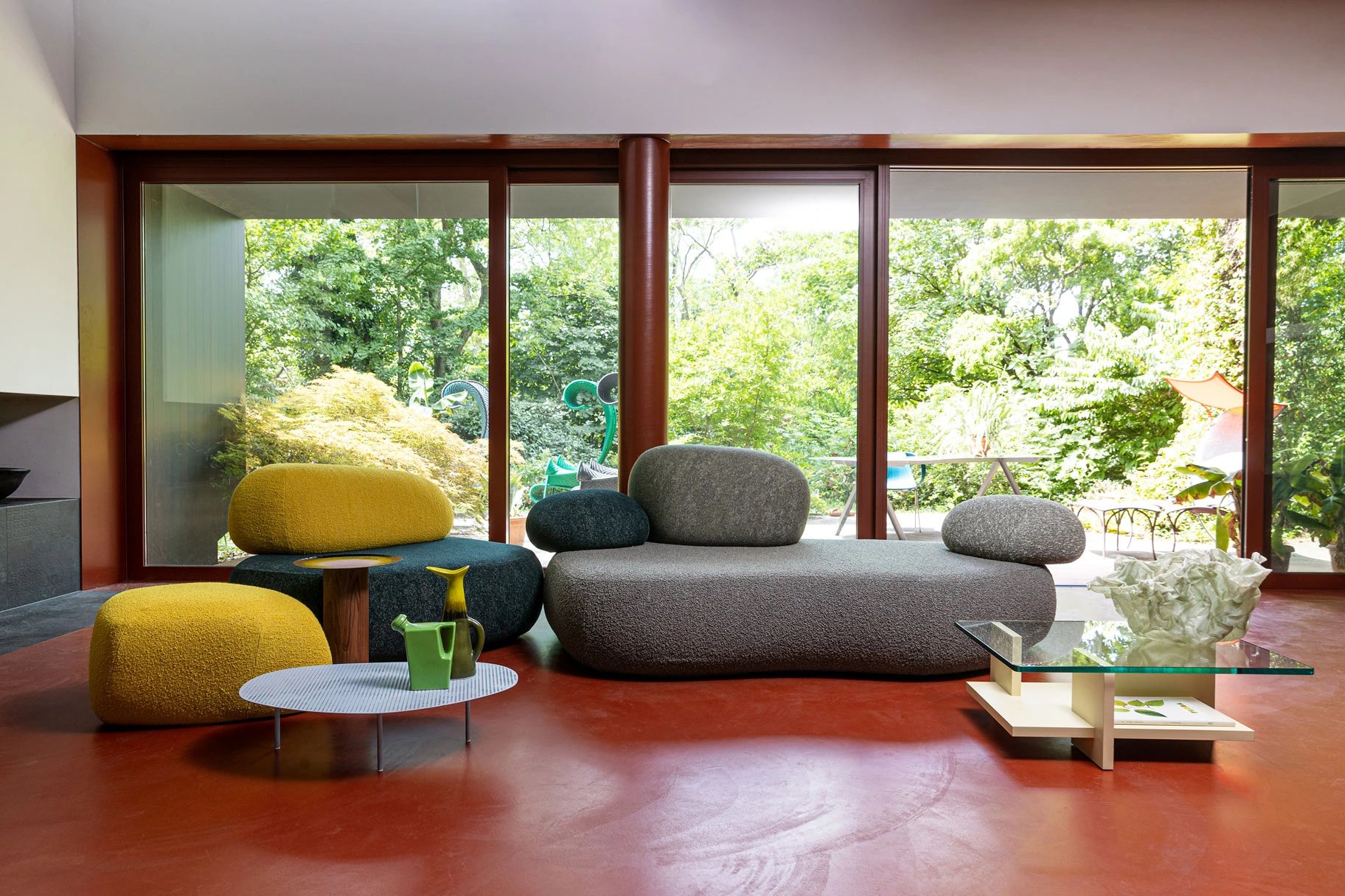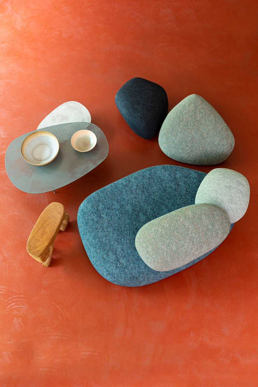 “Il nostro nuovo sistema per Moroso si ispira alle forme trovate in natura. Da bambini nella nostra nativa Svezia, il nostro parco giochi era la foresta e immaginavamo rocce, muschio e alberi caduti come mobili e luoghi in cui il corpo può riposare. Per questa collezione di posti a sedere, abbiamo scansionato in 3D le rocce che abbiamo visto durante le nostre numerose passeggiate nella foresta e abbiamo composto queste forme organiche in mobili”, condividono le designer.