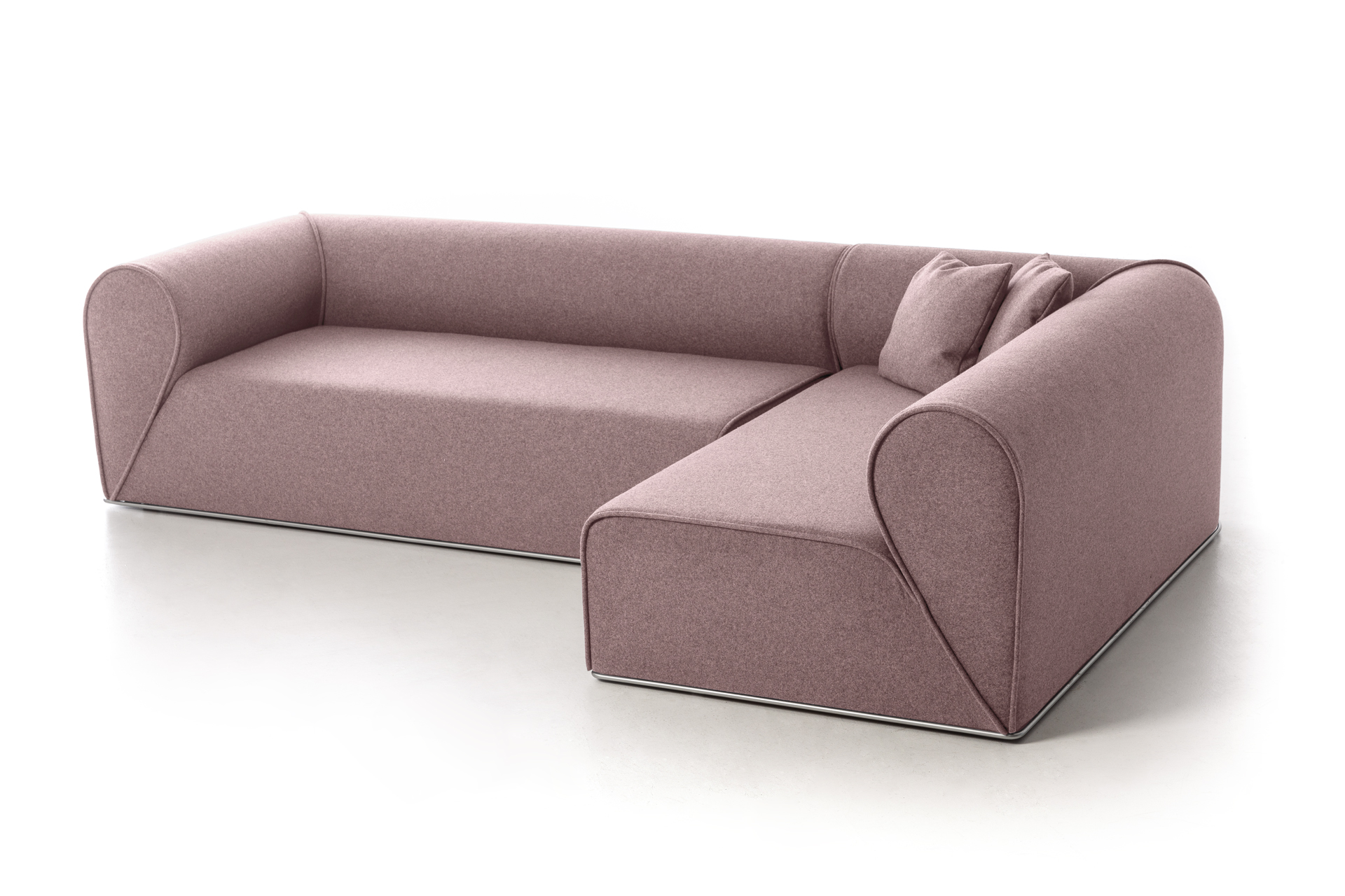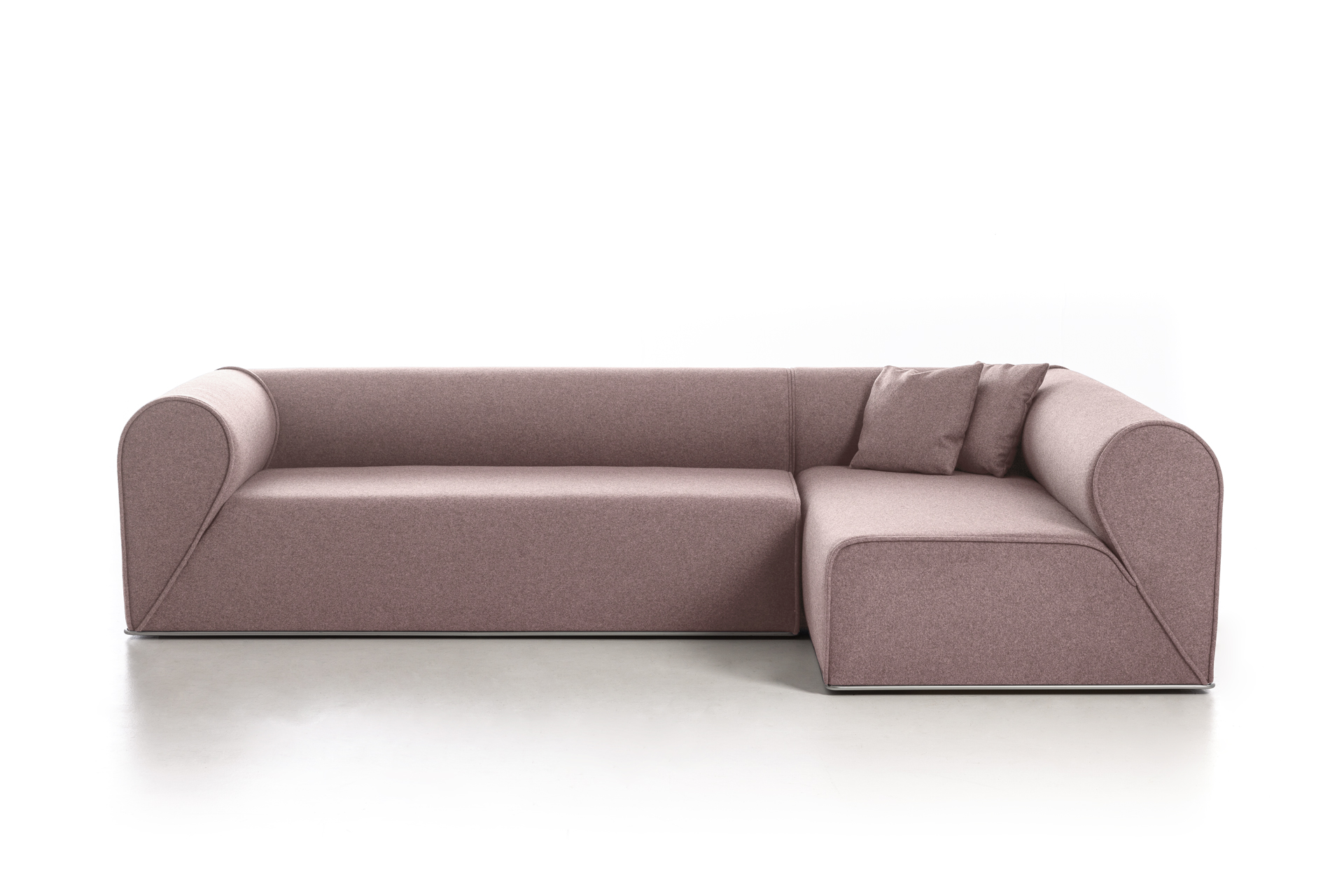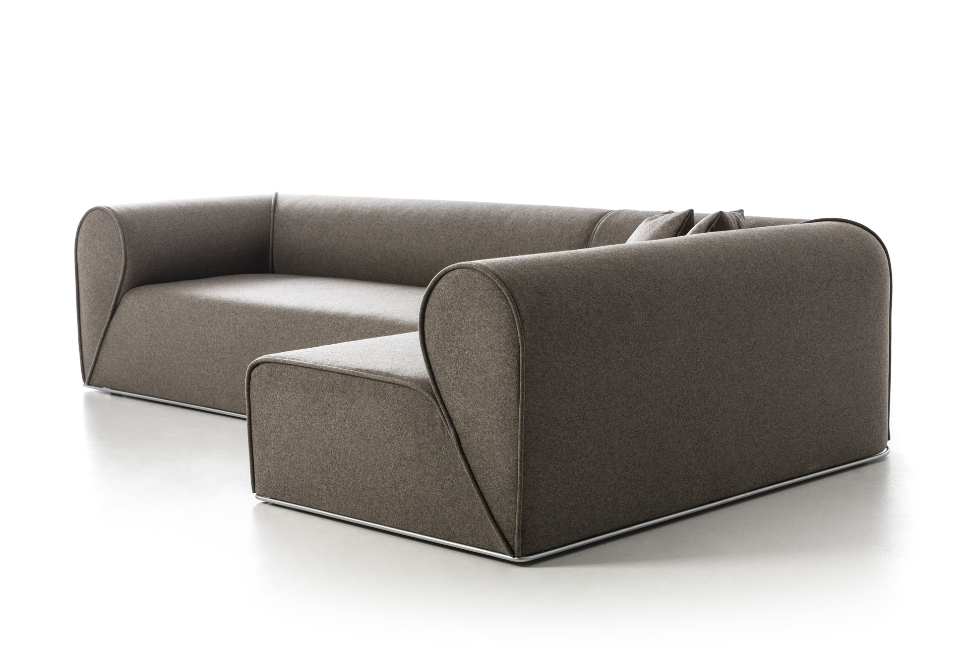 Un secondo elemento che fortemente caratterizza il prodotto è il profilo metallico alla base, disponibile in diverse finiture, che visivamente consente di sollevare ed alleggerire la presenza importante del divano soprastante conferendogli gentilezza e personalità, quasi ad indicare la firma del designer danese per Moroso.