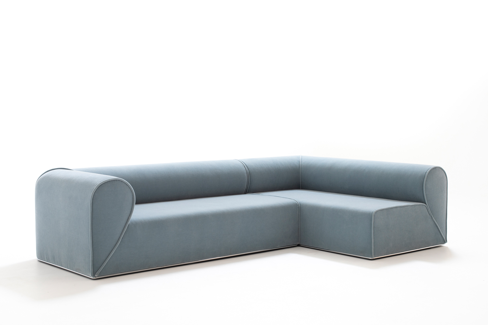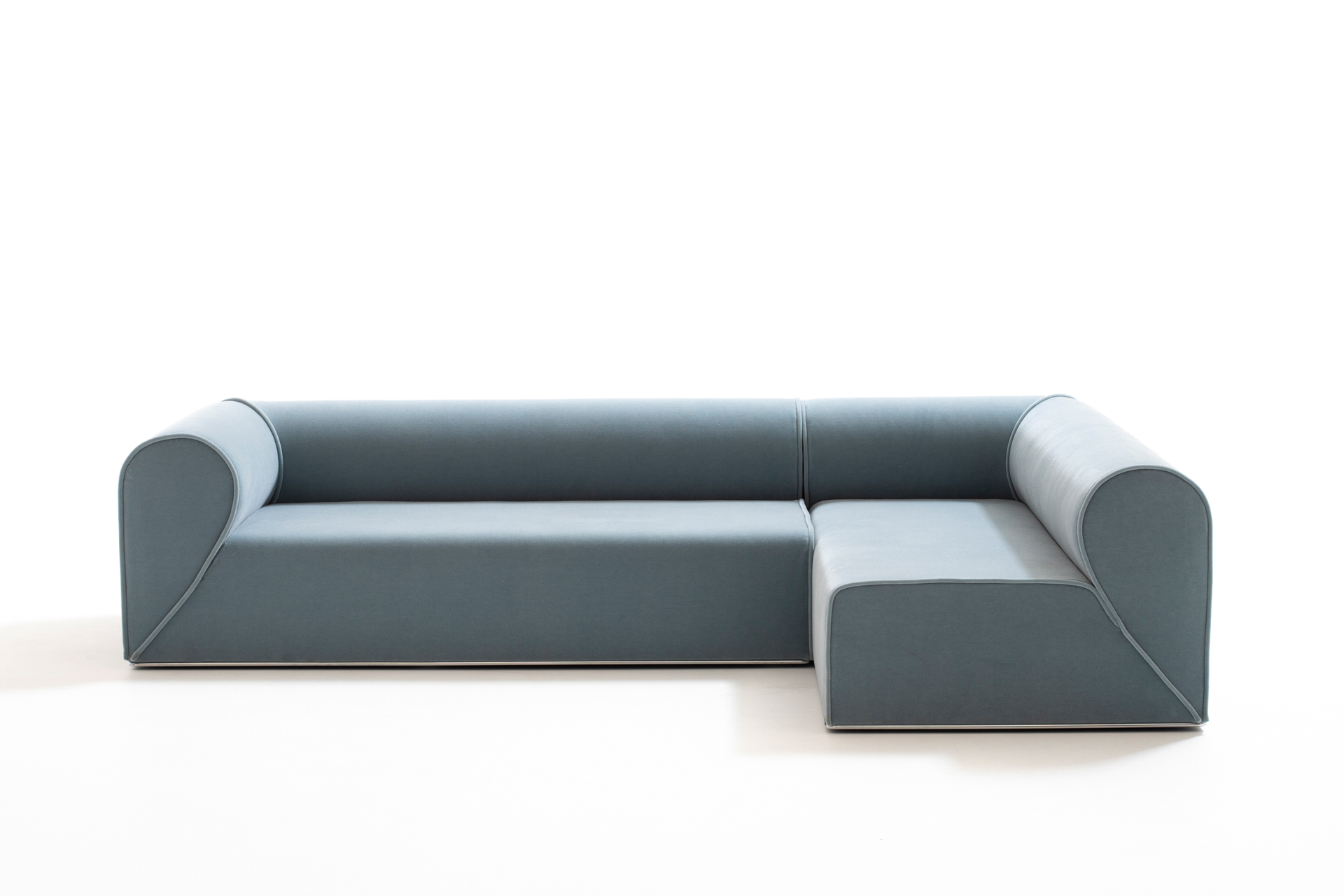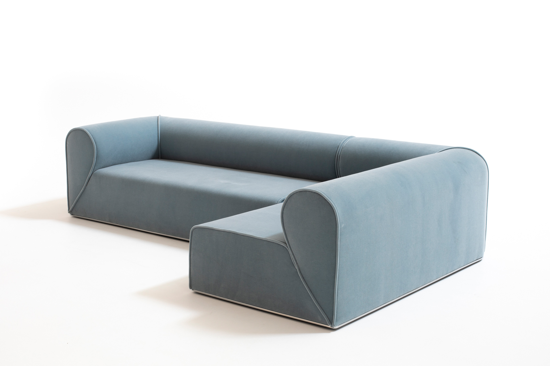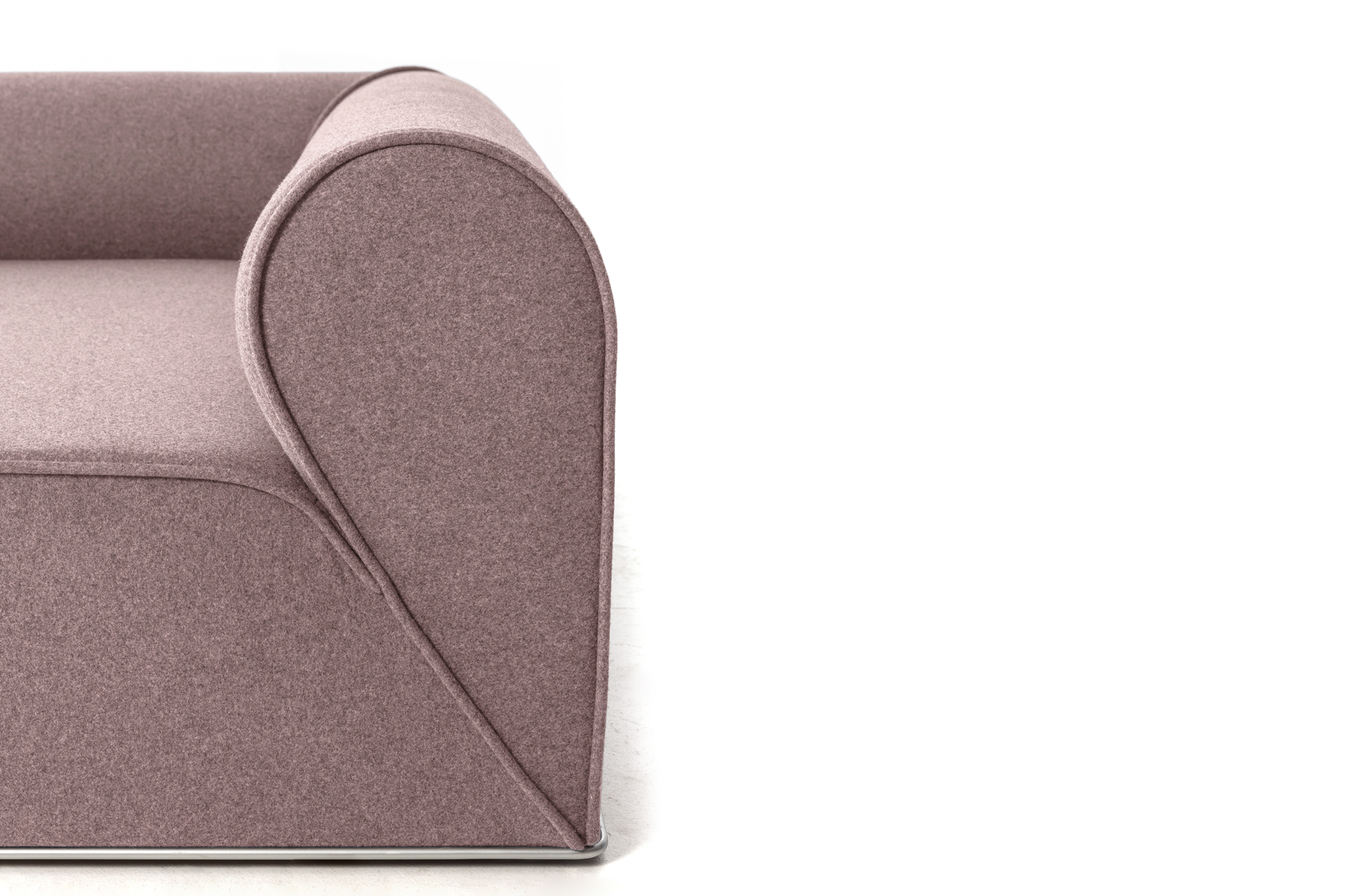 Un secondo elemento che fortemente caratterizza il prodotto è il profilo metallico alla base, disponibile in diverse finiture, che visivamente consente di sollevare ed alleggerire la presenza importante del divano soprastante conferendogli gentilezza e personalità, quasi ad indicare la firma del designer danese per Moroso.
