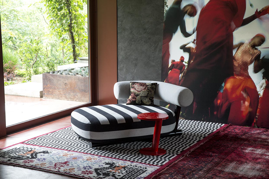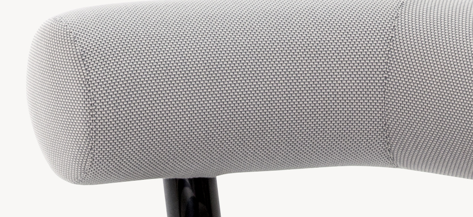 Anteporre il grosso al fino, prediligendo una scelta in controtendenza rispetto alla più comune ricerca sulla forma sottile. E, nonostante questo, mantenersi leggeri, lievi. Il progetto si articola così attorno all’aspetto più rassicurante dell’oversize: la semplicità. La struttura, essenziale e robusta, è costruita con un tubo in alluminio verniciato a polvere dal diametro di 80 mm. Appoggiato sopra, un cuscino di seduta dalla corporatura rotondeggiante, velata suggestione all’idea del modulo gonfiabile. Lo schienale, come una parentesi bold, promette comodità. L’effetto, oltre alla naturale simpatia, è quello di una piacevole rotondità, disinvolta e leggera.
