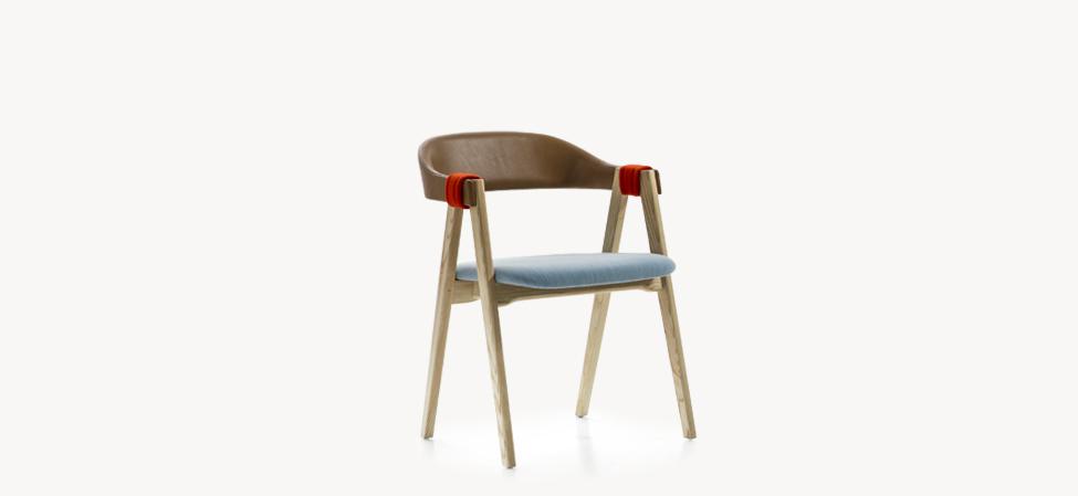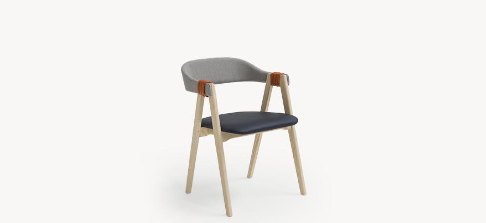 imbottita. Copribraccioli a fascia in pelle o tessuto. Mathilda non è sfoderabile. Sedia impilabile fino a 3 pezzi.
